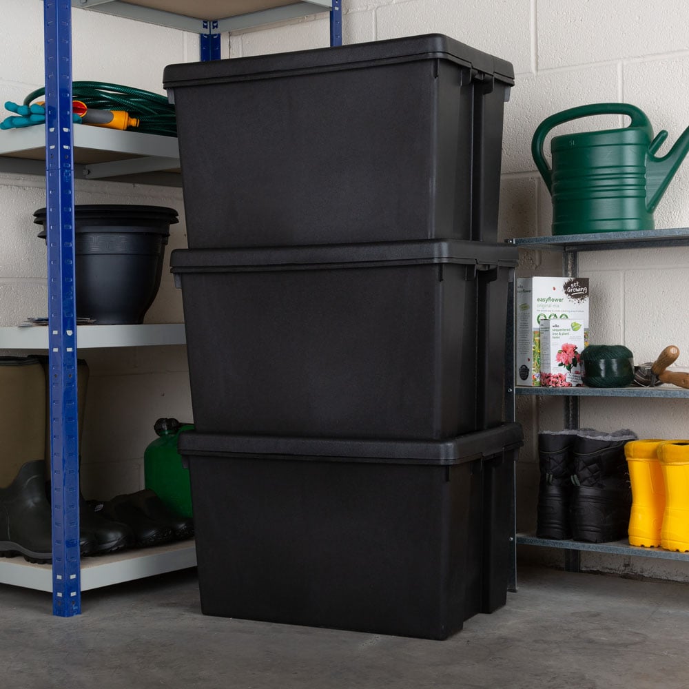Declutter your house and office and maintain a tidy look with Wham 62L Black Bam Storage Box with Lid 3 Pack. The set includes three durable boxes each with a 62-litre capacity. With detachable lids, keeping stuffs in the boxes is a hassle-free task. Just remove the lids and store things comfortably before putting the lids back for safety of the box contents. Suitable for home, schools, offices, these versatile boxes are a good choice for keeping places clutter-free. Size: 62 litres. Dimension: H59.5cm x W39.5cm x D37cm.