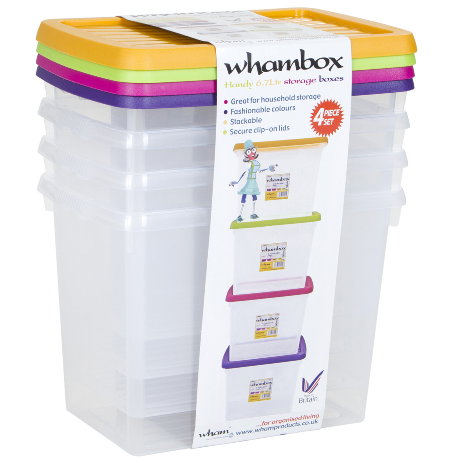 These Wham 6.7L Whambox Storage Box 4 Pack are perfect for colour coding your food or leftovers! The bright lids are eye-catching and funky, adding some colour to your storage cupboard. They are also stackable which saves even more space in your kitchen. With secure clip on lids, these storage boxes are a real all-rounder.