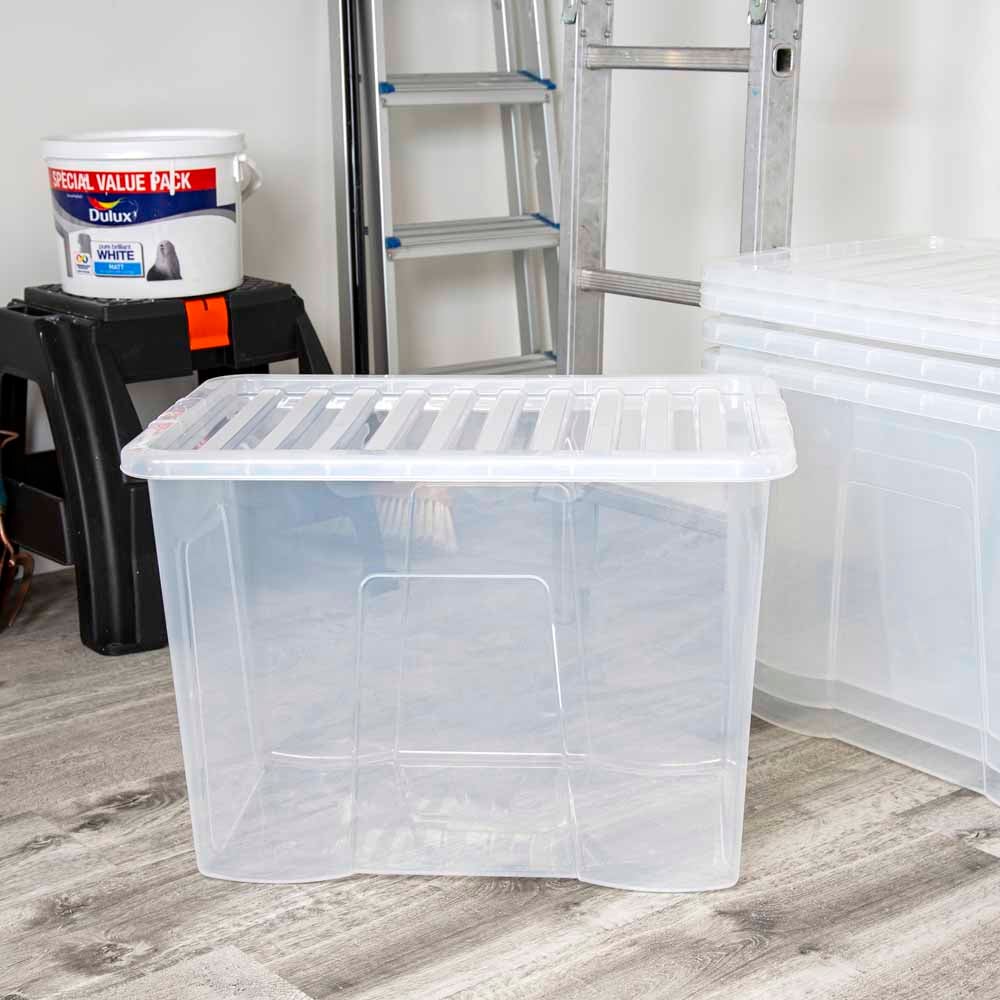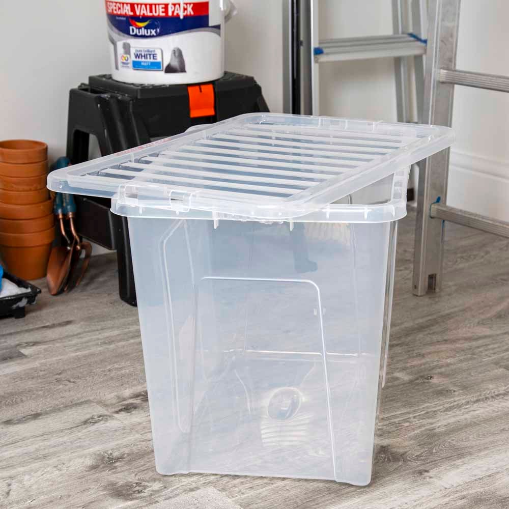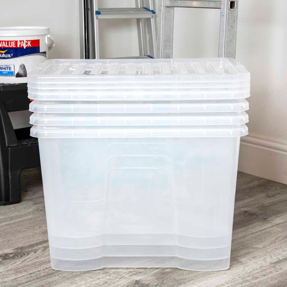 Get your house ship-shape and organised with the Wham 80L Crystal Storage Box and Lid 4 Pack. Perfect for home and office use, the deep storage boxes are ideal for hiding away those knick-knacks and paperwork. At 80L, they're large enough for storing clothes, bedding and pillows. The storage boxes feature a secure lid and built-in side handles for easy handling. There are four space-saving storage boxes in this set. Dimensions: L 60.00 x W 40.00 x H 42.00 cm