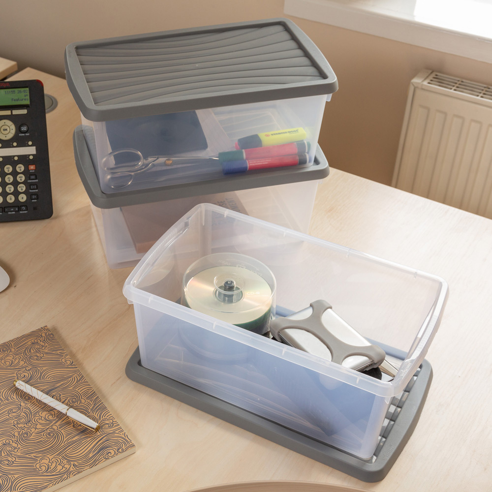 Organise your belongings with the Wham 9L Clear Stackable Plastic Storage Box with Lid 3 Pack. Perfect for home and office use, these storage boxes are ideal for hiding away those knick-knacks and paperwork. The storage boxes feature a secure lid for easy handling. There are three space-saving storage boxes in this set.