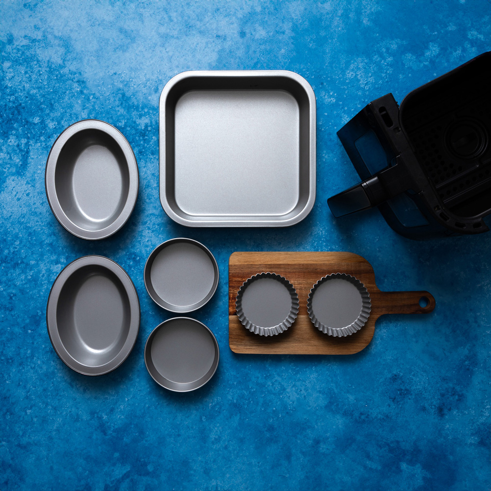 Introducing the BetterWare Air Fryer Accessories range, your perfect air fryer companion for healthier, tastier meals with minimal effort. This versatile collection offers a variety of shapes and sizes to suit all your culinary favourites. Each piece features a two-coat, high-performance non-stick coating, requiring only a minimal amount of oil, so you can enjoy healthier, tastier food. The non-stick surface makes cleaning a breeze for effortless clean-ups every time. Whether you're baking, roasting, or air frying, the lightweight, efficient design provides rapid heat transfer for quicker meals without compromising on taste. Elevate your cooking experience with BetterWare, where convenience meets culinary creativity. Suitable for Ninja Air Fryers, Tower Air Fryers, Salter and others.