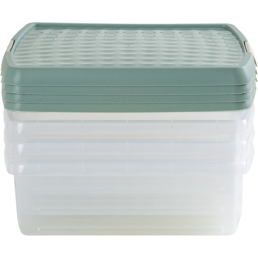 Go for a space-saving solution to simplify and arrange every room in your home or workplace with the Wham Clip 13.2L Clear Green Milieu and Stone Square Storage Box with Lid 4 Pack. This storage box features a clear base, allowing you to easily see its contents, making it perfect for sorting and storing various items such as toys, clothes, household textiles and bedlinen, photographs, travel keepsakes, crafting supplies, and more. You can maximise your storage space by stacking it and placing it on shelves, in cupboards, and in wardrobes. The box is 100% recyclable and comes with a unique clip-lock closure that securely locks the lid in place. Made by What More UK from premium, first-grade materials, the storage box is durable and built to last. It is also BPA-free, making it safe for food storage. When not in use, the storage box neatly nests together, and it can be stacked safely when needed. With its innovative design, the storage box is ideal for simplifying and organising your everyday life. Capacity: 13.2L. Dimensions: External: 39.5 x 39.5 x 12cm. Internal: 34.5 x 34.5 x 11.5cm.