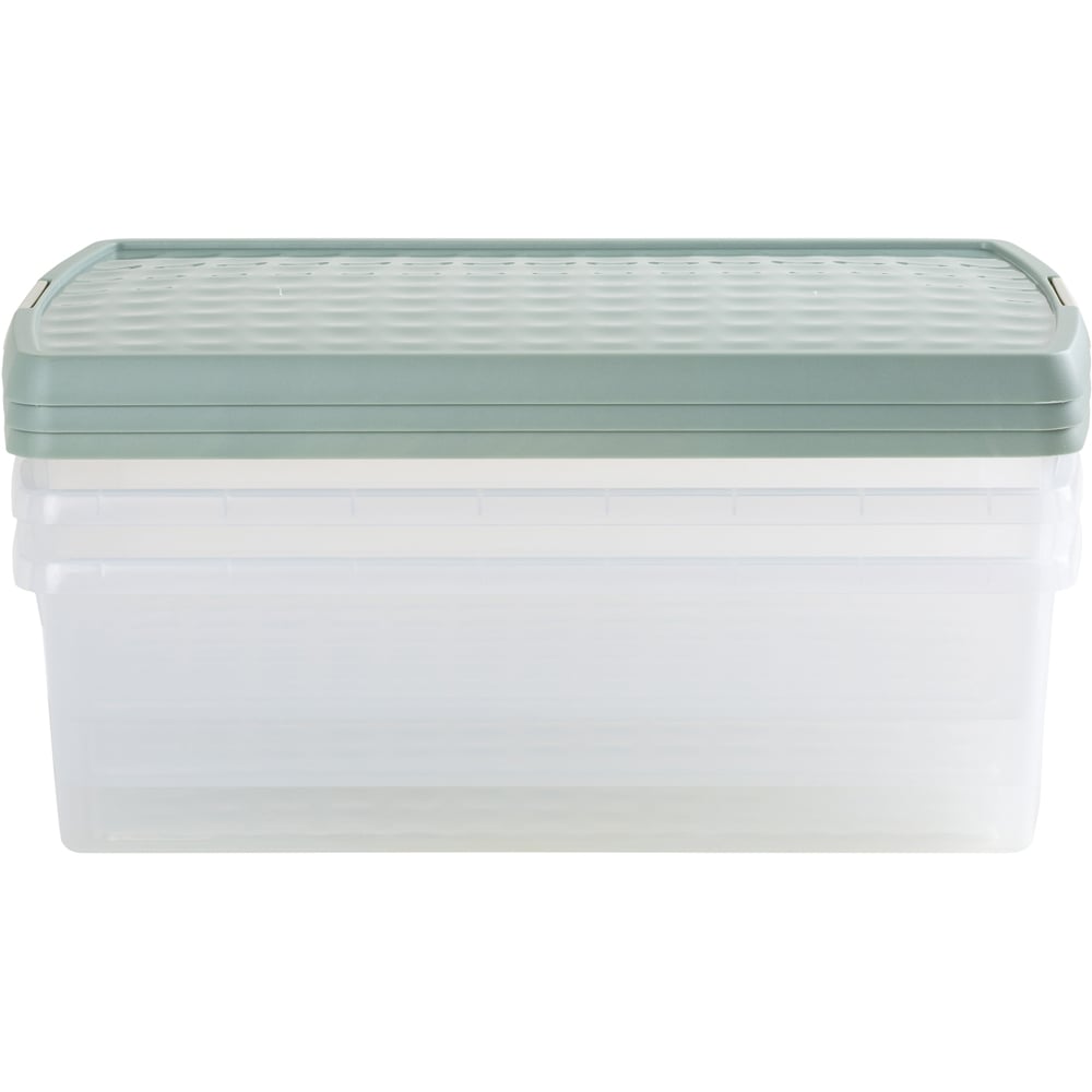 Go for a space-saving solution to simplify and arrange every room in your home or workplace with the Wham Clip 30L Clear Green Milieu and Stone Rectangular Storage Box with Lid 3 Pack. This storage box features a clear base, allowing you to easily see its contents, making it perfect for sorting and storing various items such as toys, clothes, household textiles and bedlinen, photographs, travel keepsakes, crafting supplies, and more. You can maximise your storage space by stacking it and placing it on shelves, in cupboards, and in wardrobes. The box is 100% recyclable and comes with a unique clip-lock closure that securely locks the lid in place. Made by What More UK from premium, first-grade materials, the storage box is durable and built to last. It is also BPA-free, making it safe for food storage. When not in use, the storage box neatly nests together, and it can be stacked safely when needed. With its innovative design, the storage box is ideal for simplifying and organising your everyday life. Capacity: 30L. Dimensions: External: 59.5 x 39.5 x 17cm. Internal: 54 x 34.5 x 16.5cm.