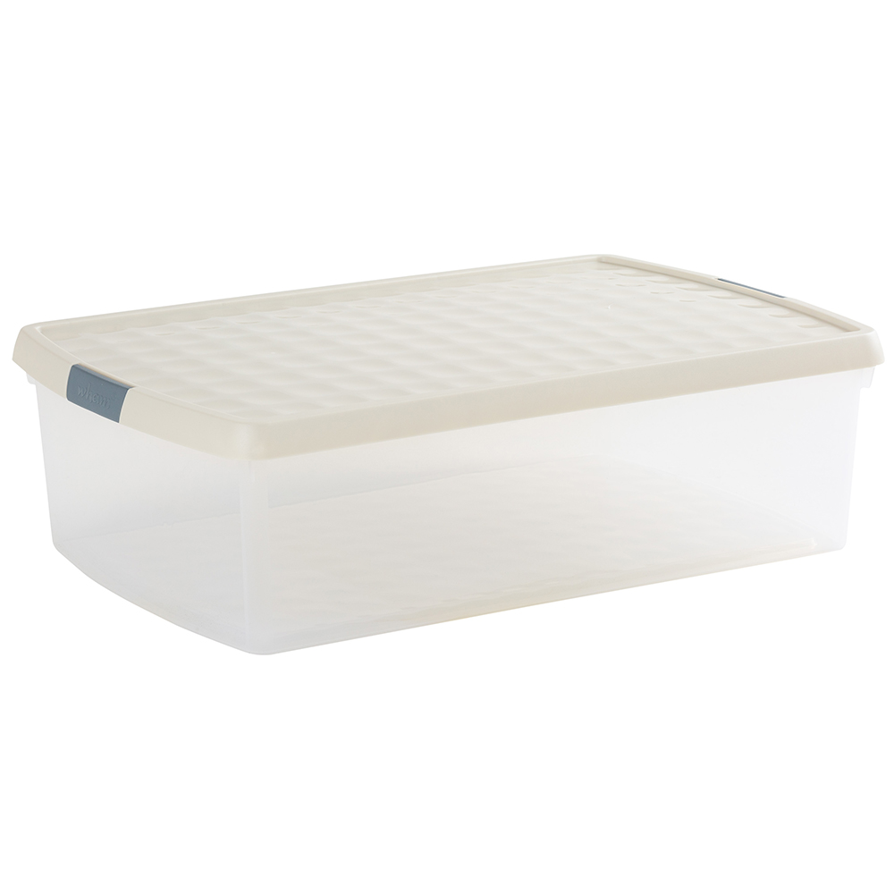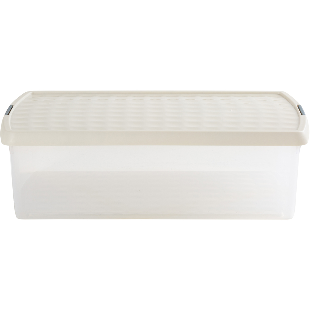 Go for a space-saving solution to simplify and arrange every room in your home or workplace with the Wham Clip 30L Clear Stone and Slate Grey Square Rectangular Storage Box with Lid 4 Pack. This storage box features a clear base, allowing you to easily see its contents, making it perfect for sorting and storing various items such as toys, clothes, household textiles and bedlinen, photographs, travel keepsakes, crafting supplies, and more. You can maximise your storage space by stacking it and placing it on shelves, in cupboards, and in wardrobes. The box is 100% recyclable and comes with a unique clip-lock closure that securely locks the lid in place. Made by What More UK from premium, first-grade materials, the storage box is durable and built to last. It is also BPA-free, making it safe for food storage. When not in use, the storage box neatly nests together, and it can be stacked safely when needed. With its innovative design, the storage box is ideal for simplifying and organising your everyday life. Capacity: 30L. Dimensions: External: 59.5 x 39.5 x 17cm. Internal: 54 x 34.5 x 16.5cm.