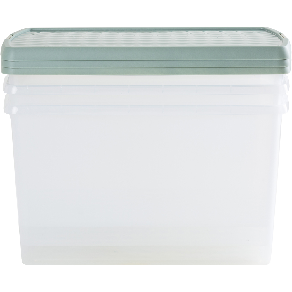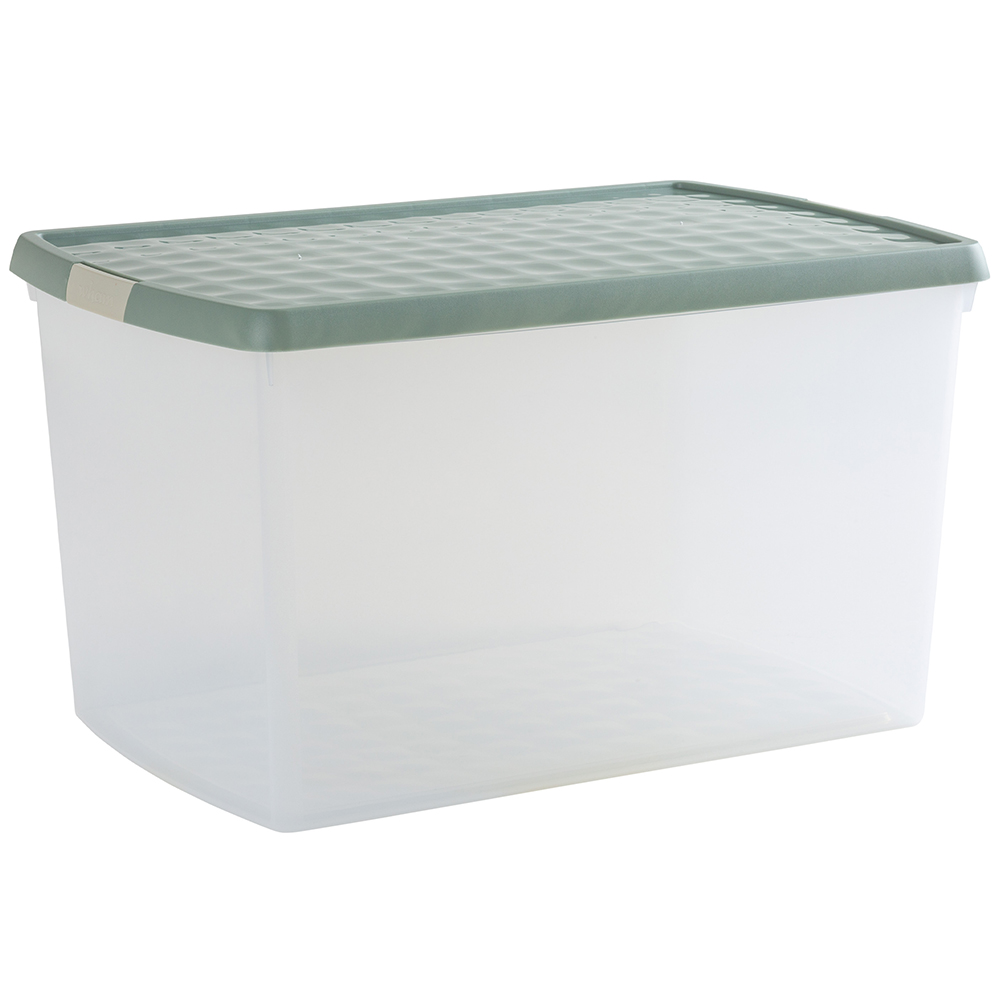 Go for a space-saving solution to simplify and arrange every room in your home or workplace with the Wham Clip 62L Clear Green Milieu and Stone Rectangular Storage Box with Lid 3 Pack. This storage box features a clear base, allowing you to easily see its contents, making it perfect for sorting and storing various items such as toys, clothes, household textiles and bedlinen, photographs, travel keepsakes, crafting supplies, and more. You can maximise your storage space by stacking it and placing it on shelves, in cupboards, and in wardrobes. The box is 100% recyclable and comes with a unique clip-lock closure that securely locks the lid in place. Made by What More UK from premium, first-grade materials, the storage box is durable and built to last. It is also BPA-free, making it safe for food storage. When not in use, the storage box neatly nests together, and it can be stacked safely when needed. With its innovative design, the storage box is ideal for simplifying and organising your everyday life. Capacity: 62L. Dimensions: External: 59.5 x 39.5 x 33.5cm. Internal: 52.5 x 32.5 x 33cm.