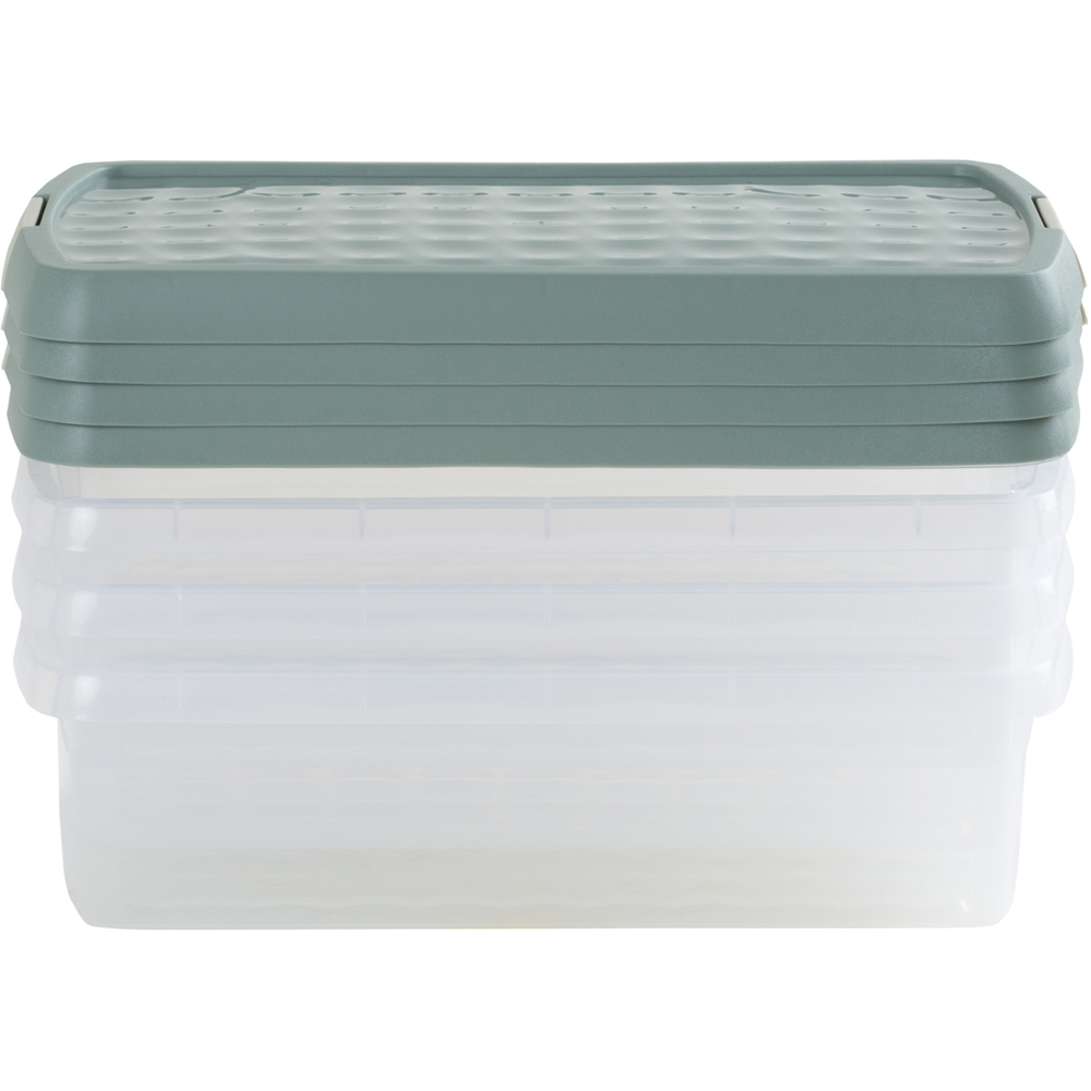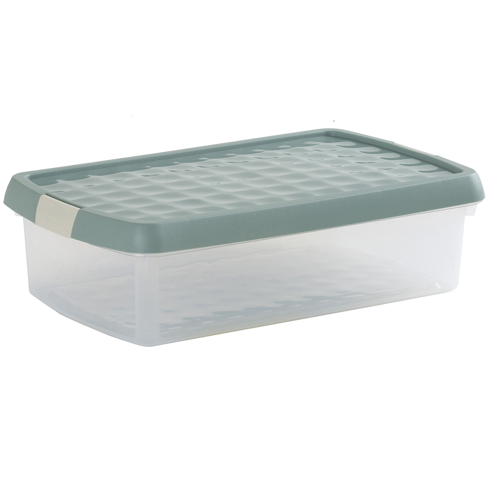 Go for a space-saving solution to simplify and arrange every room in your home or workplace with the Wham Clip 7L Clear Green Milieu and Stone Rectangular Storage Box with Lid. This storage box features a clear base, allowing you to easily see its contents, making it perfect for sorting and storing various items such as toys, clothes, household textiles and bedlinen, photographs, travel keepsakes, crafting supplies, and more. You can maximise your storage space by stacking it and placing it on shelves, in cupboards, and in wardrobes. The box is 100% recyclable and comes with a unique clip-lock closure that securely locks the lid in place. Made by What More UK from premium, first-grade materials, the storage box is durable and built to last. It is also BPA-free, making it safe for food storage. When not in use, the storage box neatly nests together, and it can be stacked safely when needed. With its innovative design, the storage box is ideal for simplifying and organising your everyday life. Capacity: 7L. Dimensions: External: 39 x 24 x 10.5cm. Internal: 35 x 20 x 10cm.