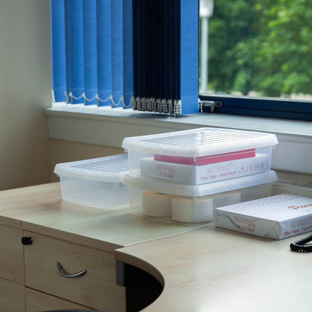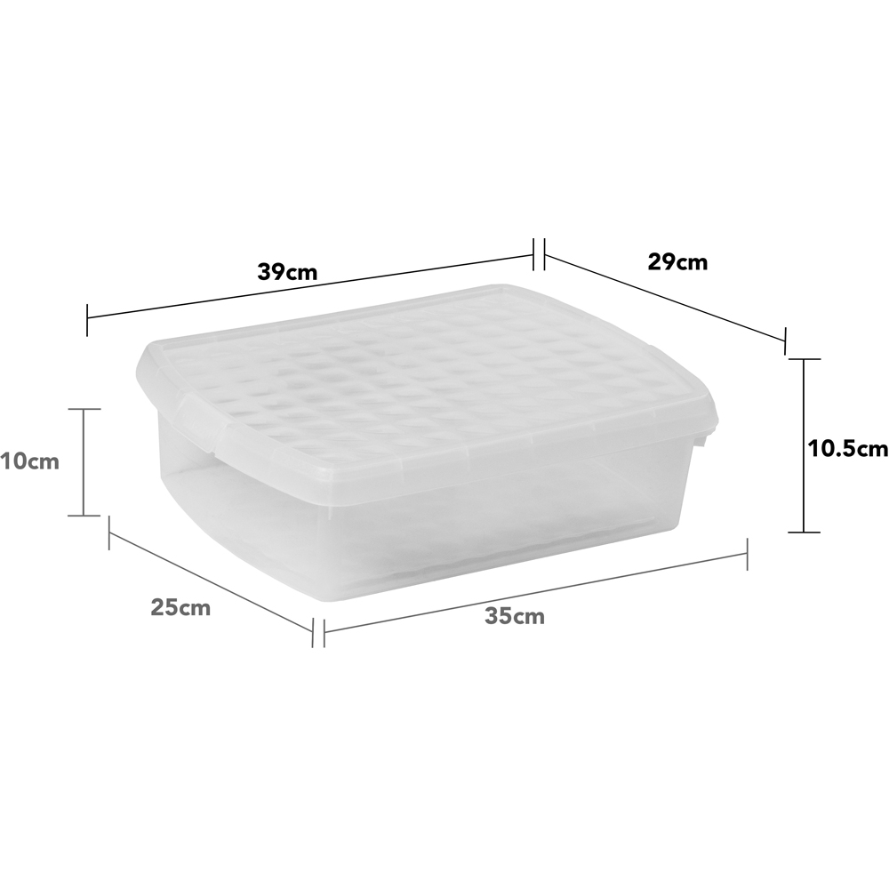 Organise your essentials with the help of Wham Clip 8.5L Clear Rectangular Storage Box with Lid 3 Pack. It offers an ideal space-saving solution to simplify and arrange every room in your home or workplace. It features a clear base that makes it easy to view contents while sorting and storing toys, clothes, household textiles, photographs and supplies. You can stack it to maximise your storage space and keep it on shelves or in cupboards and wardrobes. This storage box features a sturdy clip-lock closure to securely lock the lid in place. You can simply place the lid on top of the base and push the clips down to lock the box. It is easy to open as well, gently ease the clips in an upward motion for easy accessibility. This plastic box is manufactured using high-quality materials for durability and longevity, it is BPA free and 100% recyclable. External dimensions: 39 x 24 x 21cm. Internal dimensions: 34 x 19 x 20cm.