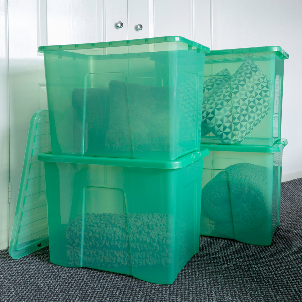 Wham 80L Clear Green Stackable Plastic Crystal Storage Box with Lid 4 Pack