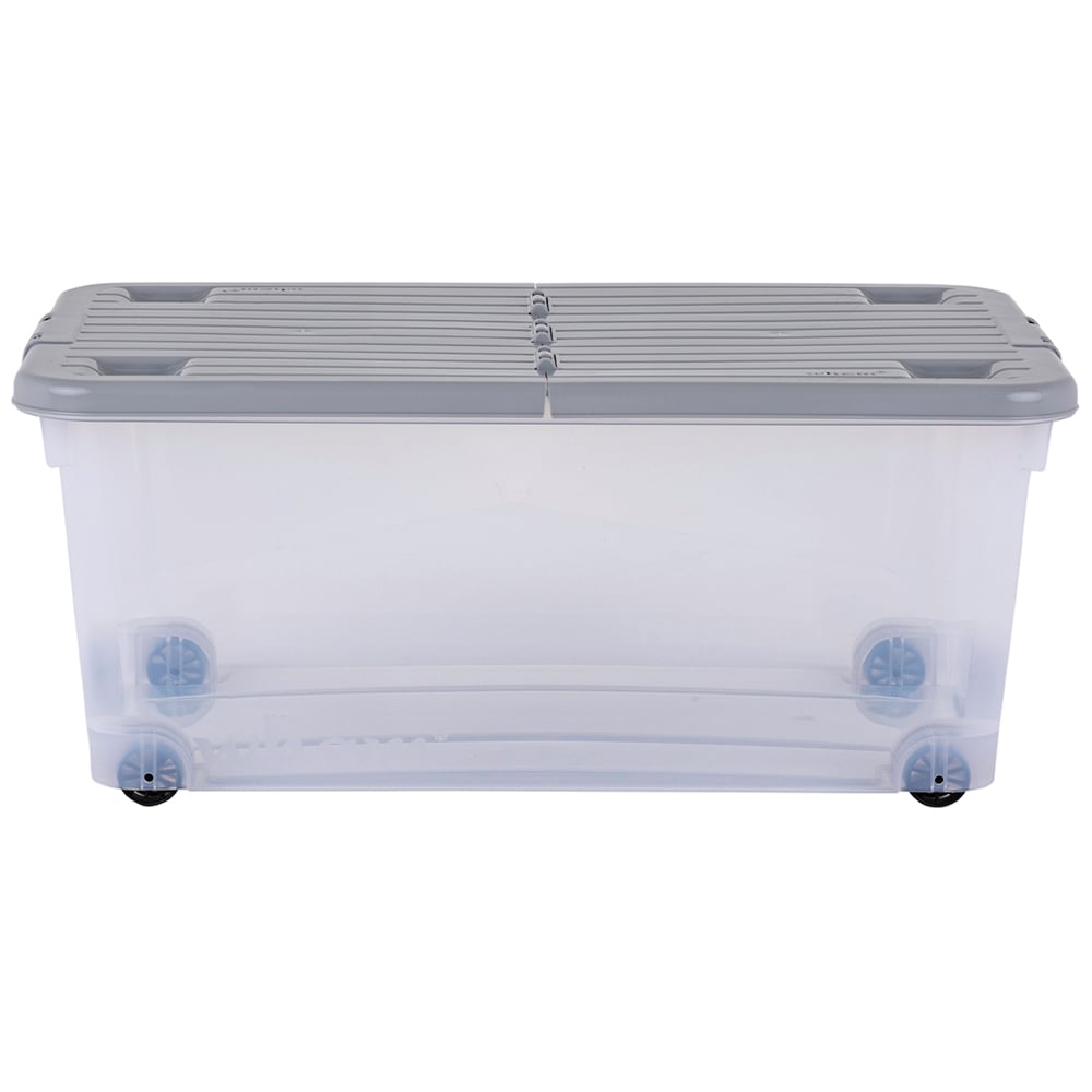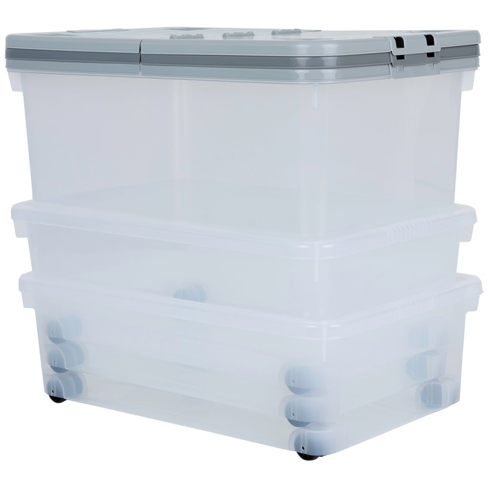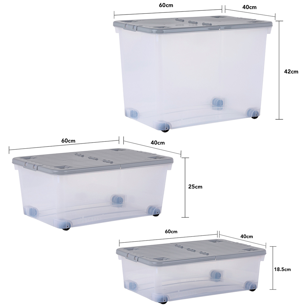 Wham Stackable Plastic Cool Grey Storage Box with Wheels and Folding Lid 3 Piece