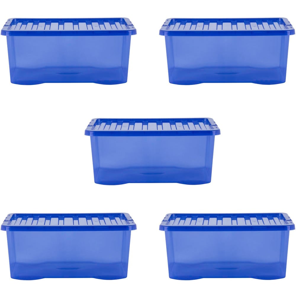 Wham 45L Tint Blue Crystal Storage Box with Lid 5 Pack