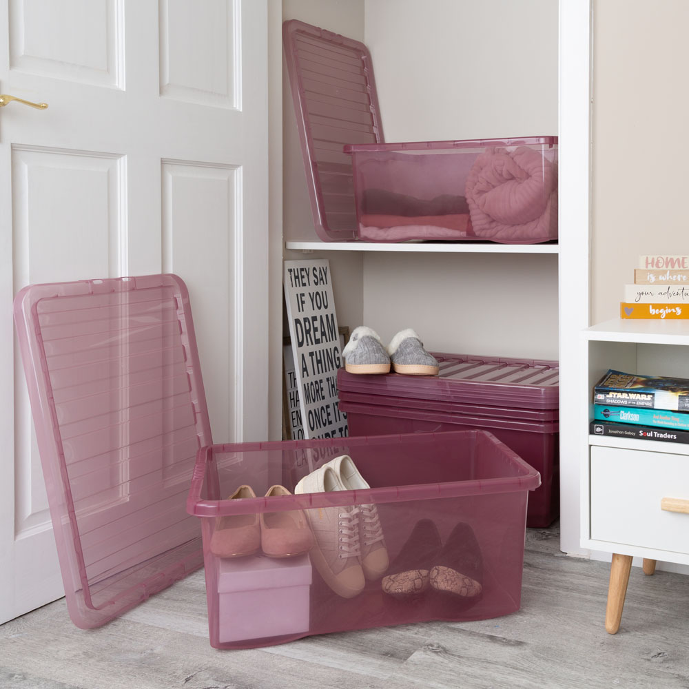 Wham 45L Tint Pink Crystal Storage Box with Lid 5 Pack