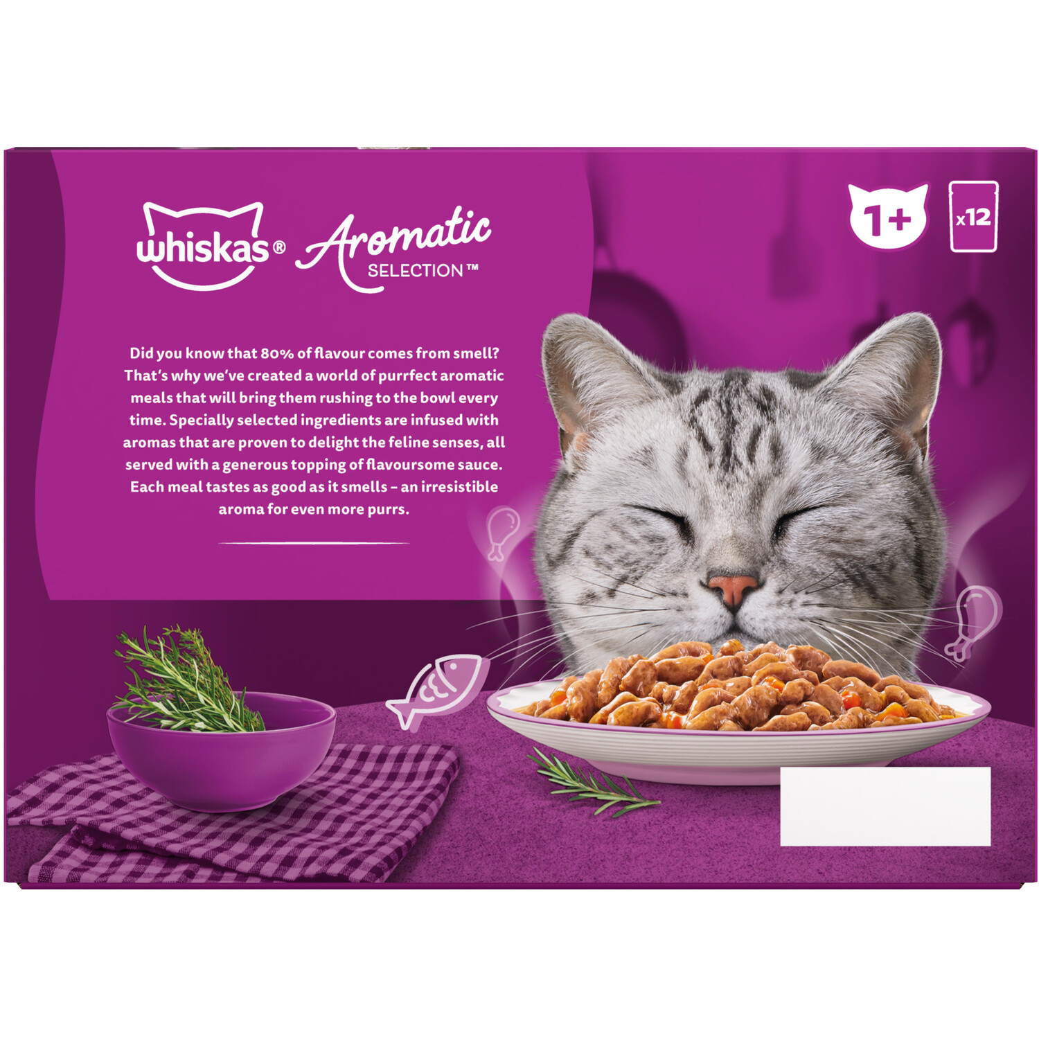 Treat your cat to an irresistible mealtime experience with the Whiskas Aromatic Cat Food in Gravy. This cat food is specially crafted to delight feline senses with rich aromas and flavours. Made with high-quality ingredients, each pouch is packed with essential nutrients for a happy, healthy cat. The generous serving of savoury gravy enhances the taste, ensuring every bite is as delicious as it smells.