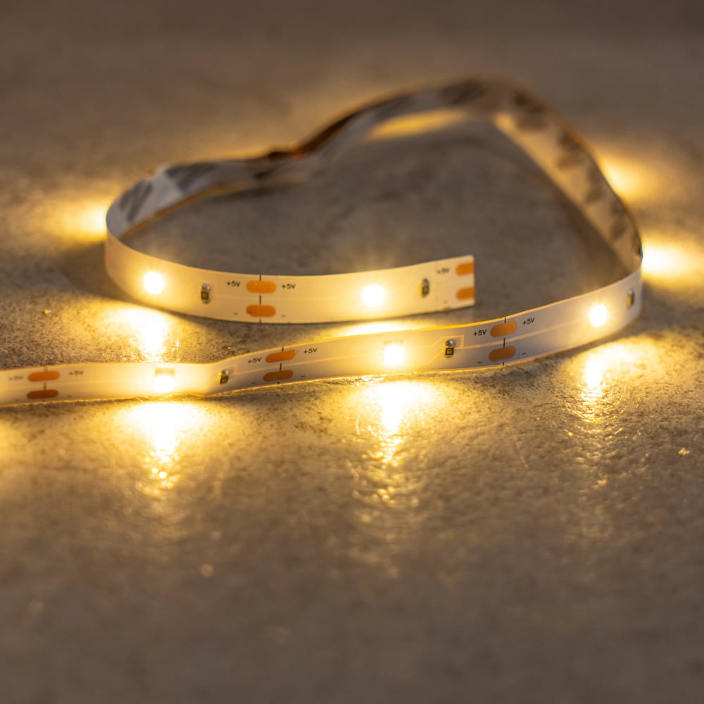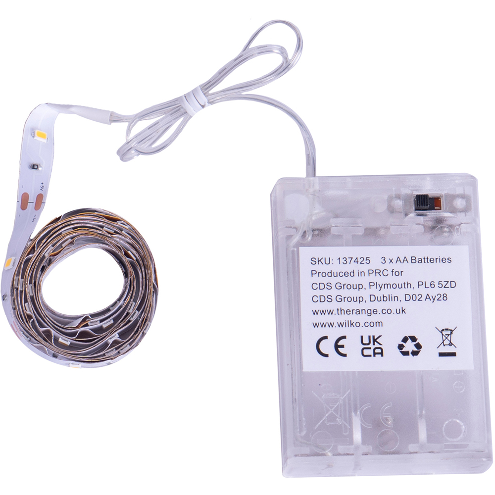 Perfect for illuminating your home in a unique and modern way, this Battery Operated LED Light Strip features an adhesive tape backing for easy mounting and will effortlessly brighten your home. Powered by batteries with an easy on/off switch, these LEDs use 500x less energy than a traditional bulb and can be cut down to size to fit your desired location.