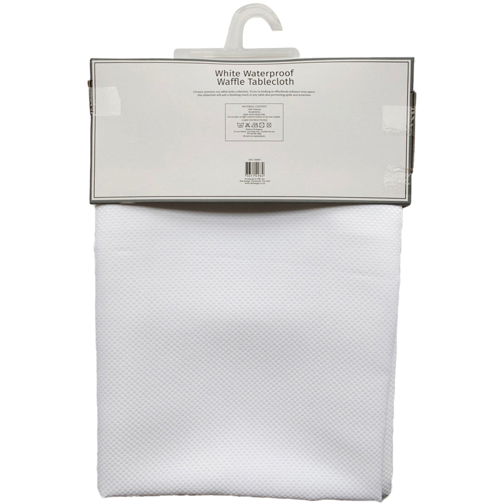 Save your table from spills and stains with this White Waterproof Waffle Tablecloth. With a simple white waffle design, this elegant design will effortlessly enhance your dining space. Whether it's for everyday use or special occasions, this tablecloth will add ambience to your dining experience.