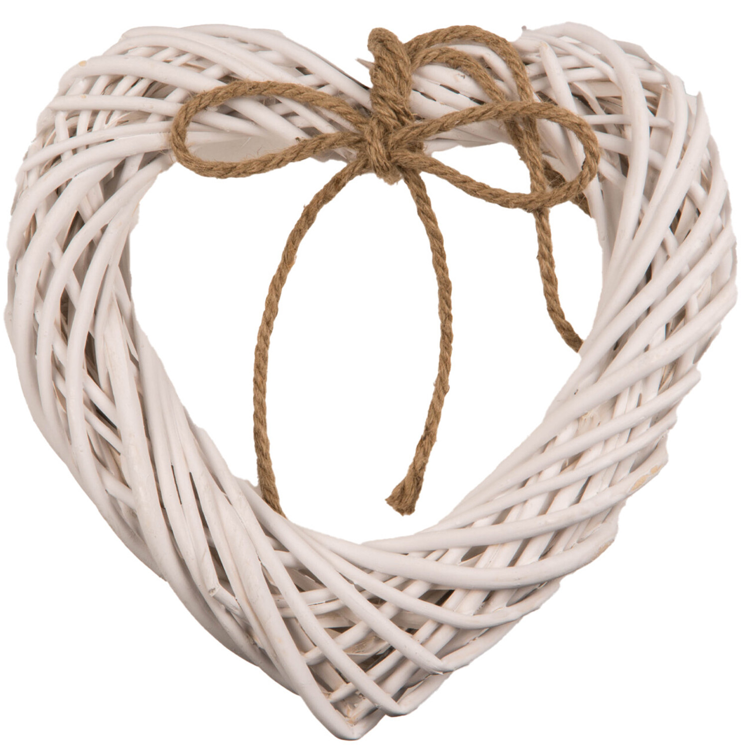 This White Wicker Heart is a rustic, shabby-chic inspired piece of home decor that brings charm to any room. Beautifully crafted into a heart shape, it's finished with a coordinating twine bow for that country home look. Perfect for hanging in your living room, bedroom, hallway, or kitchen, this can be easily easily added to any style of home.