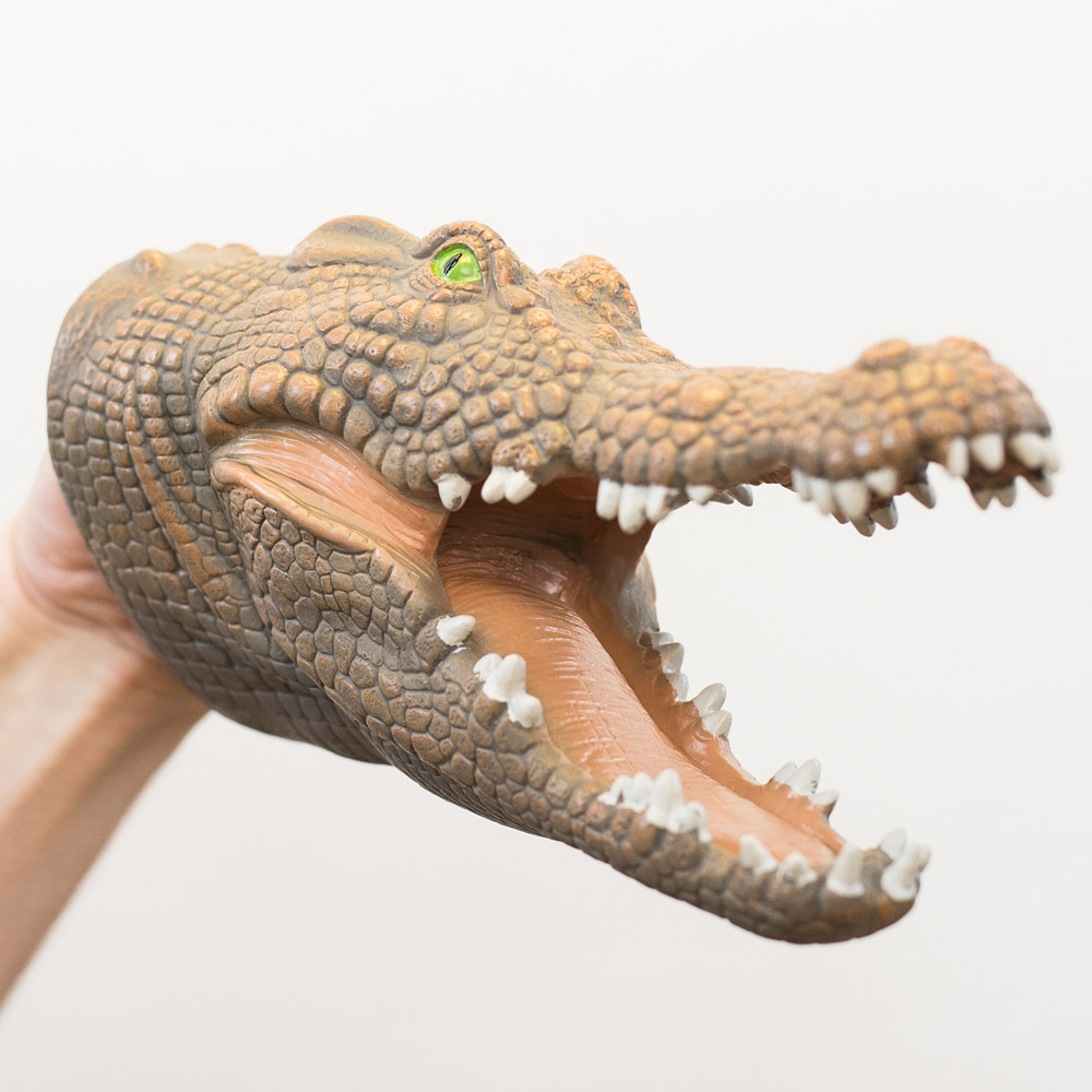 Let the magic of theatre come alive in your home with the Wild Thingz Crocodile Hand Puppet. It is perfect for storytelling and imaginative role-play. Crafted from soft material, it feels great in the hands and allows for easy manipulation. The puppet is designed to fit most children’s and adults’ hands, making it versatile for everyone. Its flexible design lets you easily shape and move the crocodile's mouth, creating plenty of fun snapping motions that everyone will love. With its realistic styling and lifelike features, this hand puppet brings stories to life. It is suitable for individuals aged three years and above, making it a great gift for both young and adult storytellers.