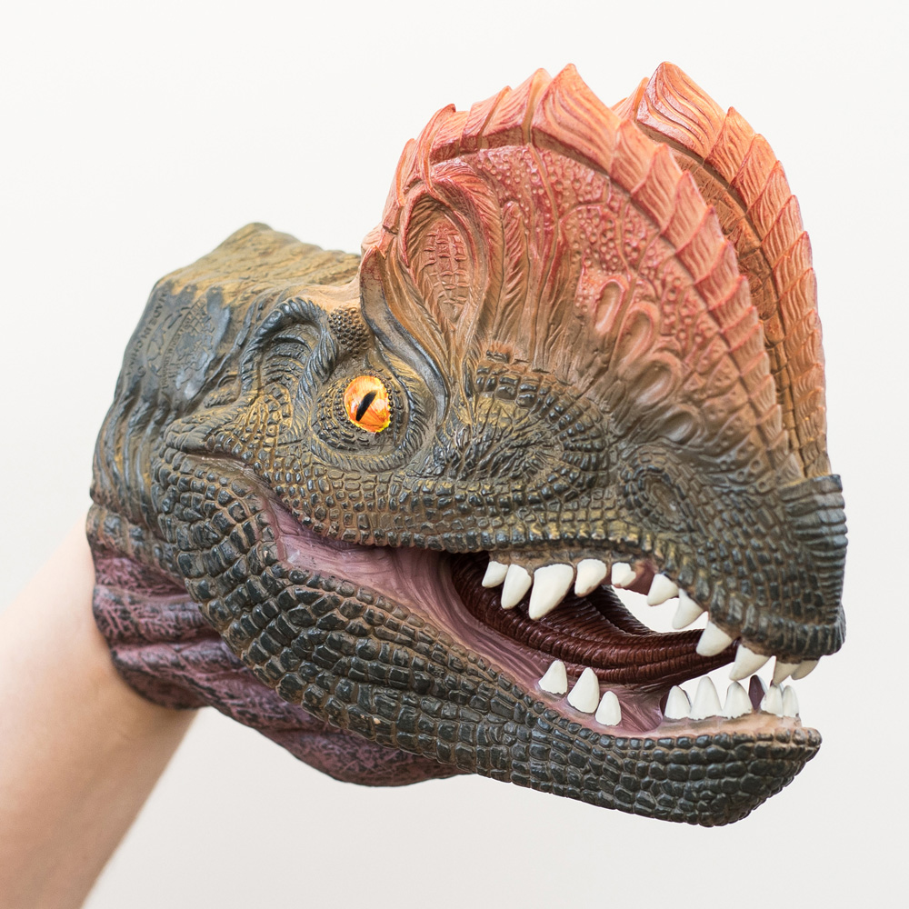 Let the magic of theatre come alive in your home with the Wild Thingz Dilophosaurus Hand Puppet. It is perfect for storytelling and imaginative role-play. Crafted from soft material, it feels great in the hands and allows for easy manipulation. The puppet is designed to fit most children’s and adults’ hands, making it versatile for everyone. Its flexible design lets you easily shape and move the dinosaur's mouth for loads of dino roars, creating plenty of fun snapping motions that everyone will love. With its realistic styling and lifelike features, this hand puppet brings stories to life. It is suitable for individuals aged three years and above, making it a great gift for both young and adult storytellers.