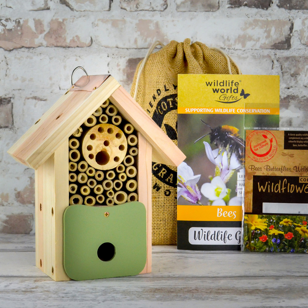 Give the bees a boost with this Wildlife World For The Love Of Bees Gift Set. This incredible bee-friendly gift set features a stunning bee barn crafted from FSC timber and recycled plastic, providing a haven for solitary bees and other essential pollinators. The barn's thoughtful design offers the pollinating heroes a secure place to take shelter, with an enclosed nesting area at the base. The set includes nesting hay to create a cosy environment for the hardworking little friends. Additionally, the pack contains a packet of nectar-rich wildflower seeds, which are easy to grow and will bring vibrant beauty to any garden while providing nourishment for bees. By gifting this set, you can help attract a variety of solitary bees and other important pollinators to your garden. It comes beautifully presented in a 100% compostable gift box, making it an ideal present for nature enthusiasts who also support wildlife conservation. Lastly, the set includes a valuable conservation guide on garden bees, offering plenty of tips and information on how to protect these very important pollinators. This thoughtful gift bundle is perfect for anyone who loves nature and wildlife.