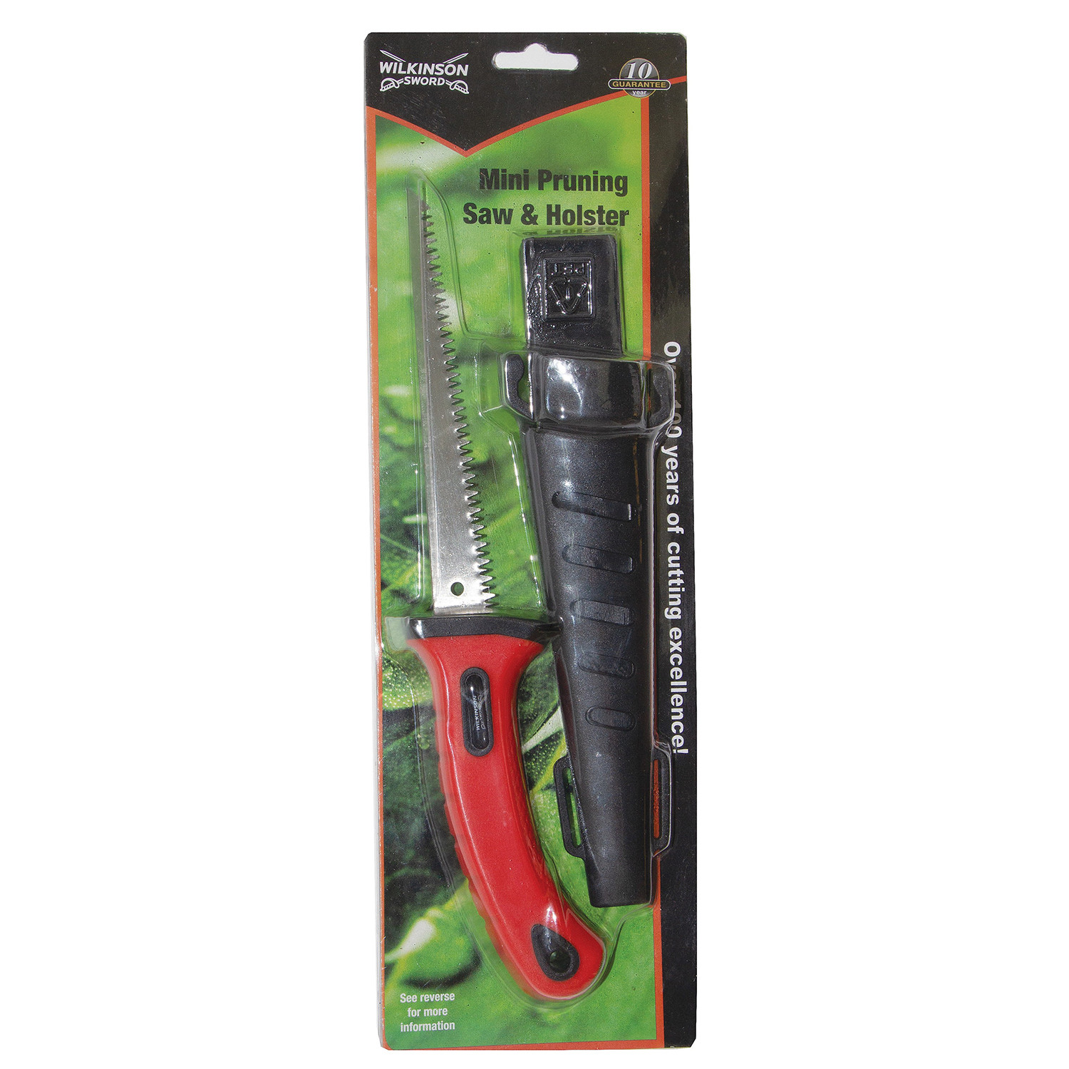 Perfect for tackling an array of pruning and light-duty gardening tasks with ease, the Wilkinson Sword Mini Saw and Holster Set is sure to come in handy. Featuring triple ground teeth for a 50% faster cutting rate, an ergonomic handle with soft-grip, and even a sturdy holster to help keep your carbon steel blade stored securely, this desirable gardening tool set is sure to help make light work of any cutting task.