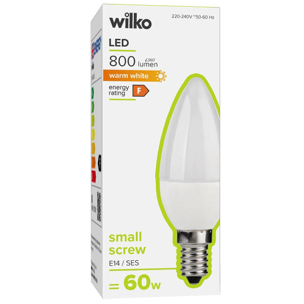 This LED candle with high brightness is a must-have for wall lights, chandeliers and narrow table lamps. Lasting for 15 years, these LED candle bulbs save 85% of energy, making them the ideal replacement for 60w light bulbs. SES fitting. Non-dimmable bulb. Always read the instructions before use. Size: 806lm.