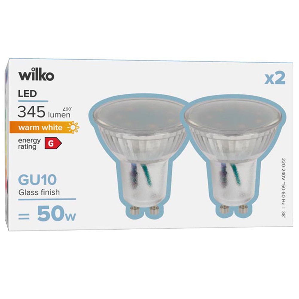 This 2 pack LED GU10 spotlight with 345 Lumens and a glass surround is ideal for fitting in recessed and bar spotlights, emitting a bright, warm white light that'll add an inviting soft touch to your home. Potentially lasting for 15 years (15,000 hours), the LED bulb achieves an 85% energy saving over older, obsolete bulb technology. GU10 fitting. Non-dimmable bulb. Unsuitable for use with dimmer switches. Always read the instructions before use. Did you know an LED light bulb can save you on average, £7 per year compared to halogen light bulbs. Plus, this LED bulb is estimated to last for up to 15,000 hours, which is equivalent to 15 years and therefore saves you even more money on replacing bulbs. From 1st September 2018 halogen bulbs have been phased out from sale, so now’s a great time to save the pennies and pounds with our energy-saving LED bulbs.