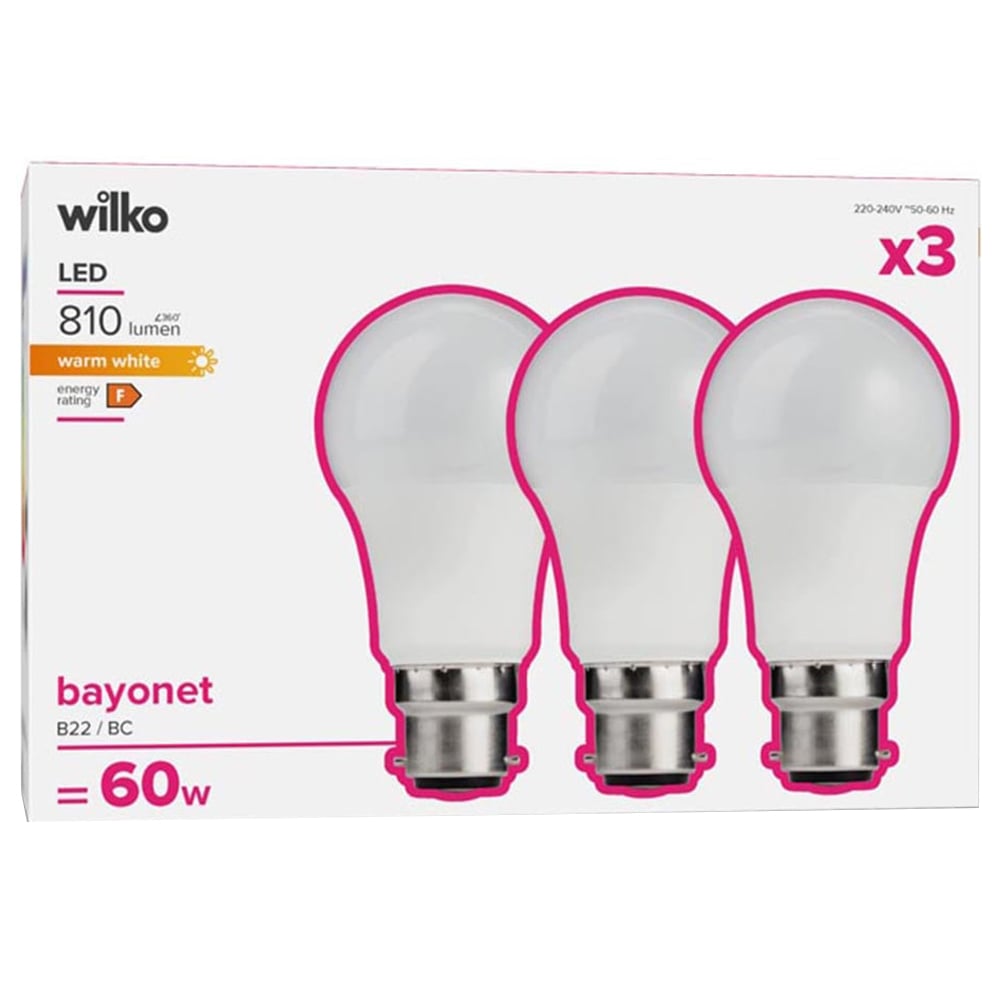 This 3 pack of classic design light bulbs with high 810lm brightness is ideal for main lighting, table lamps or floor lamps. Lasting for 25 years, these Classic design LED bulbs save 85% of energy, making them an ideal replacement for older technology bulbs such as Halogen. BC Fitting. Non-dimmable bulb. Always read the instructions before use.