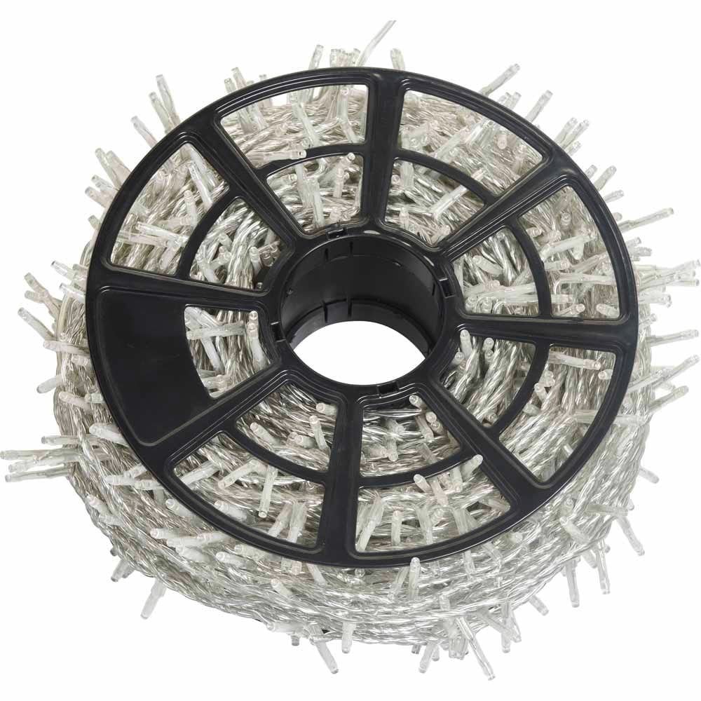 Choose from 8 different effects with our pack of 300 warm white lights. Suitable for both indoor and outdoor use, these static LED lights are mains-operated and have a clear 22.9 metre-long cable and memory controller. Warning: Keep out of reach of young children and pets. Long cords may be generated. Strangulation hazard. Keep away from naked flames and other sources of heat. Do not submerge in water. Total length of cable: 22.9m. Number of bulbs: 300. Colour of LED: Warm White. Distance to first bulb: 5m. Distance from bulb to bulb: 6cm