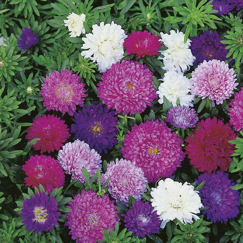 Grow a lovely collection of pink, white and purple flowers in your garden meadows using our Aster Dwarf Queen Seeds. Aster Dwarf Queen seeds produce double flowers that smother the low-growing, compact plants in colour. The perfect bedding aster they are useful for beds, borders, and containers. A half-hardy annual. Plant indoors between February and April or outdoors between April and May to enjoy blooms from July to October. Height 25cm. The average pack contains 300 seeds. Height: 25cm.