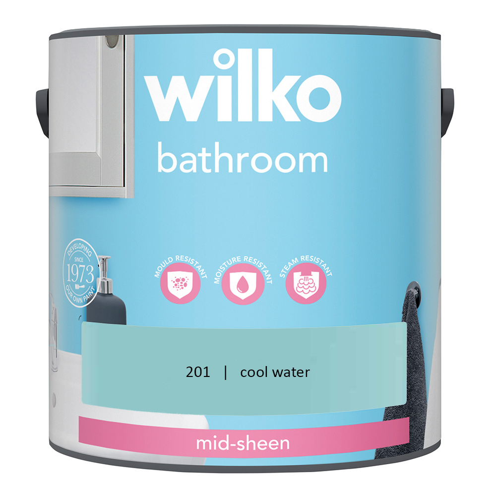 Wilko Bathroom Mid Sheen Emulsion Paint 2.5L dries in 2 to 4 hours and is just the thing for family bathrooms, where moisture can be a problem. This durable paint has been specially formulated to be mould*, moisture and steam resistant. The best results always start with the best preparation. Clean walls with Wilko sugar soap. Ensure you have a smooth surface and the right rollers and brushes for the job. The contents of this can will cover 30 square metres** which after 2 coats, is about the same width as 3 large baths. (**Approximate coverage depends on the surface of your walls, see the back of can for more details). Colours viewed on screen may not show the same on your walls. To make sure this colour's right for you, we recommend ordering a tester pot or popping into store to check first. *Paint contains a biocide to protect dry paint surface from fungal/mould degradation.