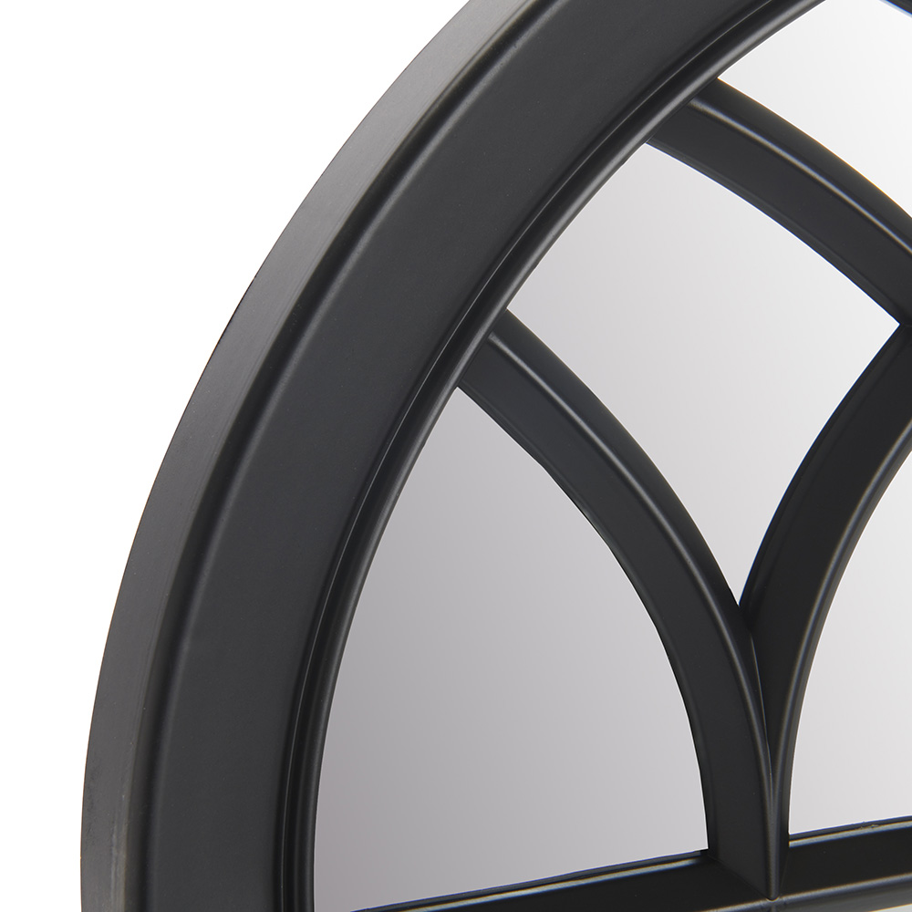Add style to your bathroom with our on-trend arched church mirror. Designed in classic black, the mirror has a strong frame which makes it sturdy and durable. Complete the look with a matching soap dispenser, tumbler and soap dish. Directions for use: Take care when hanging this item against painted walls. Please ensure that the most appropriate fittings are used for the type of wall on which the product will be hung. Clean glass with a soft cloth using only water or glass cleaner.