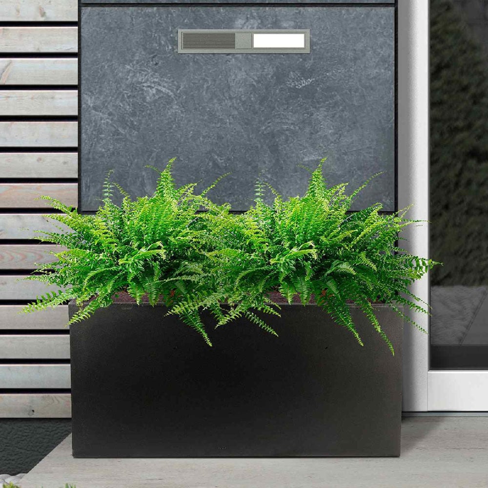 Transform your green space with our Black Concrete Fibrestone Trough Outdoor Plant Pot 30cm. With a 54L capacity, it provides ample space for various houseplants while adding a touch of elegance to your house entrance or garden. Crafted from fibrestone using state-of-the-art finishing techniques, this sleek and stylish planter combines the look and solid feel of solid stone or concrete with the lightweight, cost-effective benefits of fibreglass. Its durable construction ensures it can withstand the most demanding environments. Designed with pre-drilled drainage holes to prevent water retention, this planter promotes healthy plant growth. This planter is frost-proof, ensuring it remains robust and reliable all year round. Its simple elegance complements a wide range of home and garden décor, making it perfect for gift for any gardening enthusiast. Size: H30 x W30 x L60cm.