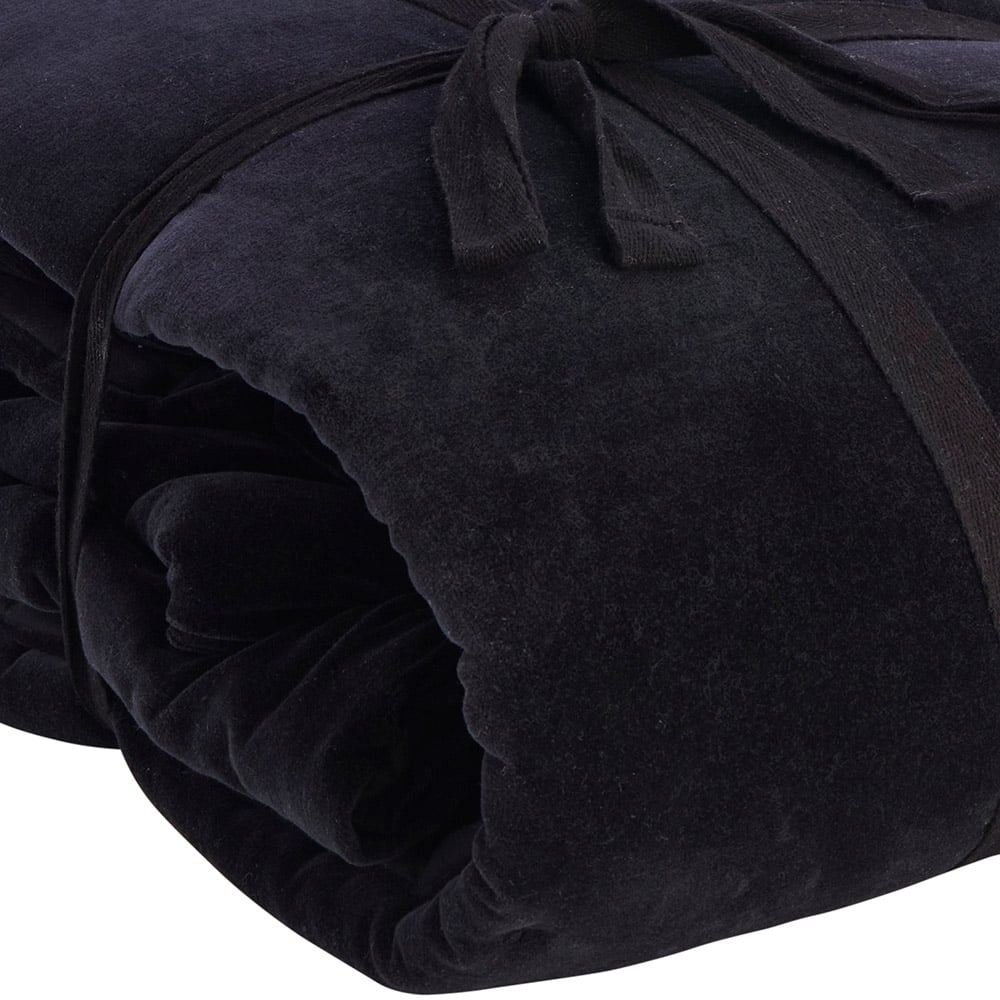 Add a touch of elegance and comfort to your furniture with our Black Velvet Throw. Made with cotton, this throw is super-soft and makes a perfect snuggle partner. Ideal for sofas, standalone chairs, beds and more. Easy to maintain, the throw can be quickly cleaned in washing machines. It measures 130 x 170cm. Care and use: Shell: 100% Cotton / Filling 100% Polyester. Wash before use. Machine wash cool. Wash separately. Do not bleach. Tumble dry low. Do not iron. Do not dry clean.