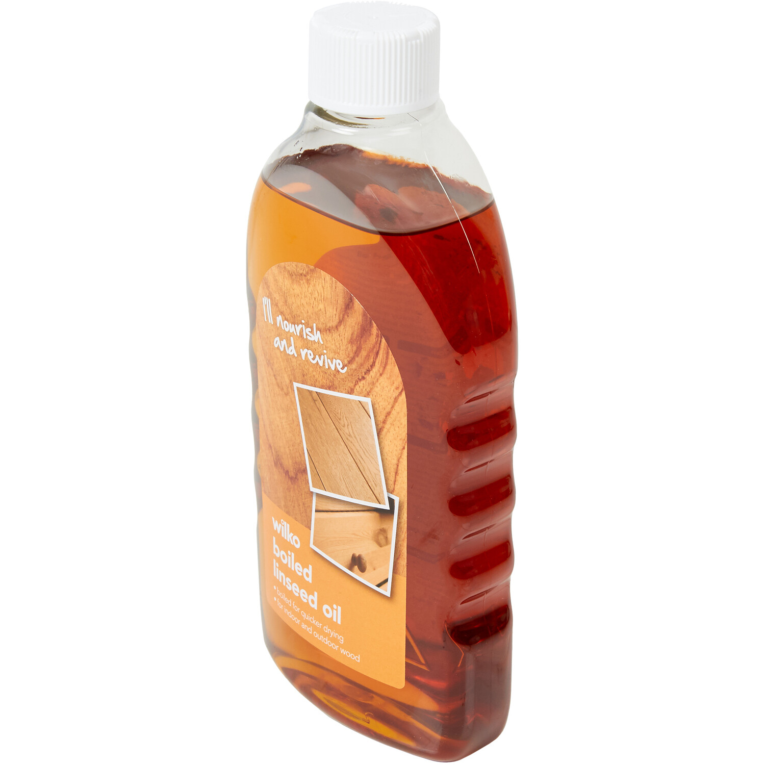 Nourish and revive your old woodwork with this wilko Boiled Linseed Oil. Suitable for use on both indoor and outdoor wood, the oil protects wood from drying out after long periods in the sun and gives a lasting natural sheen.