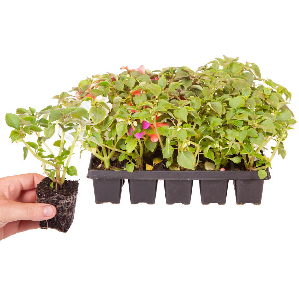 Transform your garden into a vibrant oasis with our Multicolour Busy Lizzie Beacon Mix Garden Ready Plant 20 Pack. Known as one of the most beloved bedding plants, these floral beauties promise to flourish in UK gardens, come rain or shine, sun or shade. Their robust and resilient nature makes them top performers, boasting reliable, consistent growth and an explosion of summer-long blooms in an array of dazzling colours, including pristine white, fiery red, soft pink, enchanting violet, and bright orange. What sets Busy Lizzies apart from other bedding plants is their remarkable ability to thrive in both sunny and shaded spots. This versatility makes them perfect for creating stunning arrangements in hanging baskets and pots or as a charming filler in flower borders, effortlessly plugging gaps and enhancing the overall beauty of your garden. These plants are supplied as 20 Garden Ready specimens, eagerly awaiting to brighten your outdoor space once the risk of frost has passed. Bring your garden to life with the enchanting hues and effortless charm of Busy Lizzies.