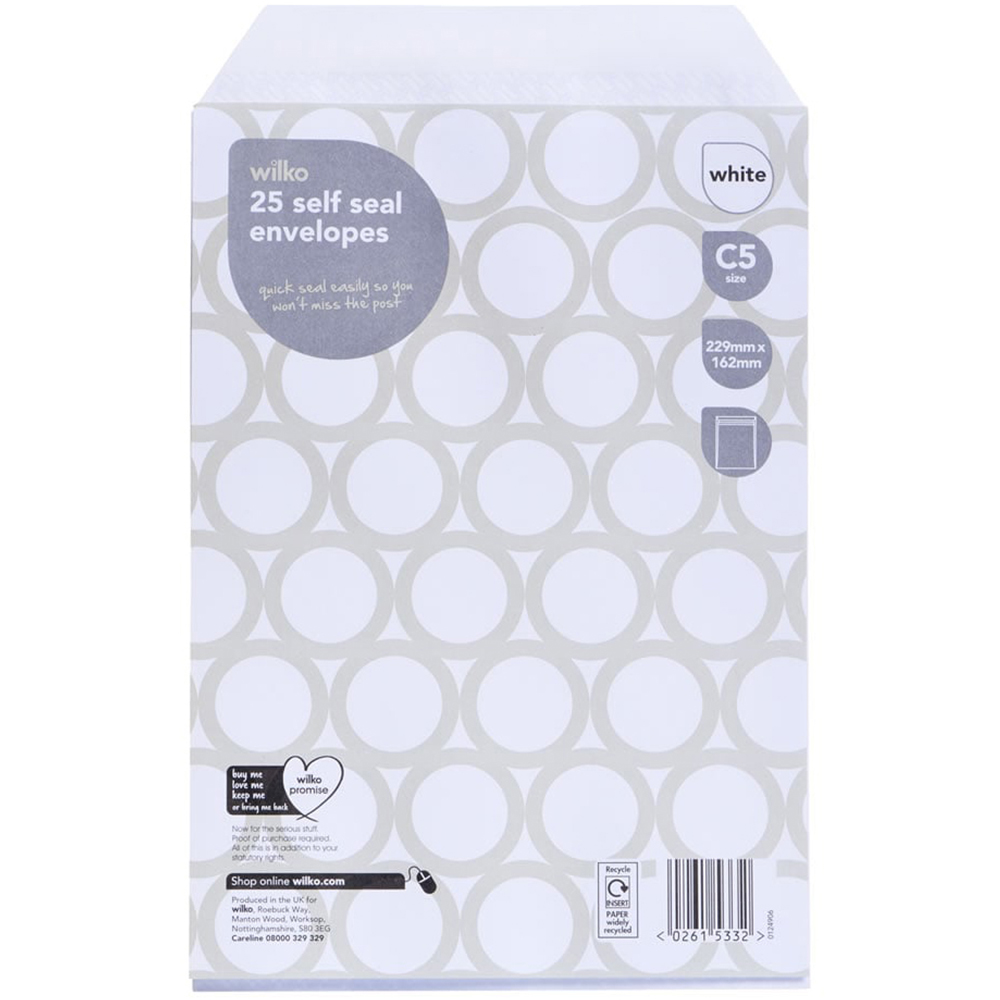 Wilko C5 White Self Seal Envelopes 229 x 162mm 25 pack