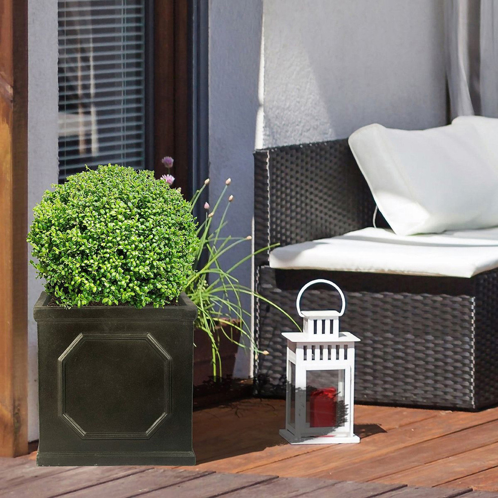 Enhance your passion for growing plants with our Chelsea Dark Grey Light Stone Outdoor Planter 30cm. It is the perfect gift for anyone who loves to grow green pockets in and around their house. This square outdoor planter is crafted using fibre stone material with state-of-the-art finishing techniques. It features a landscape-enhancing structure that looks and feels like solid stone or concrete, combined with all the advantages of fibreglass, but at a fraction of its weight and cost. It also features pre-drilled holes to prevent water retention and ensure the plants stay fresh and healthy. This 27L planter is Ideal for all kinds of traditional and contemporary style outdoor spaces. Dimensions: 30 x 30 x 30cm.