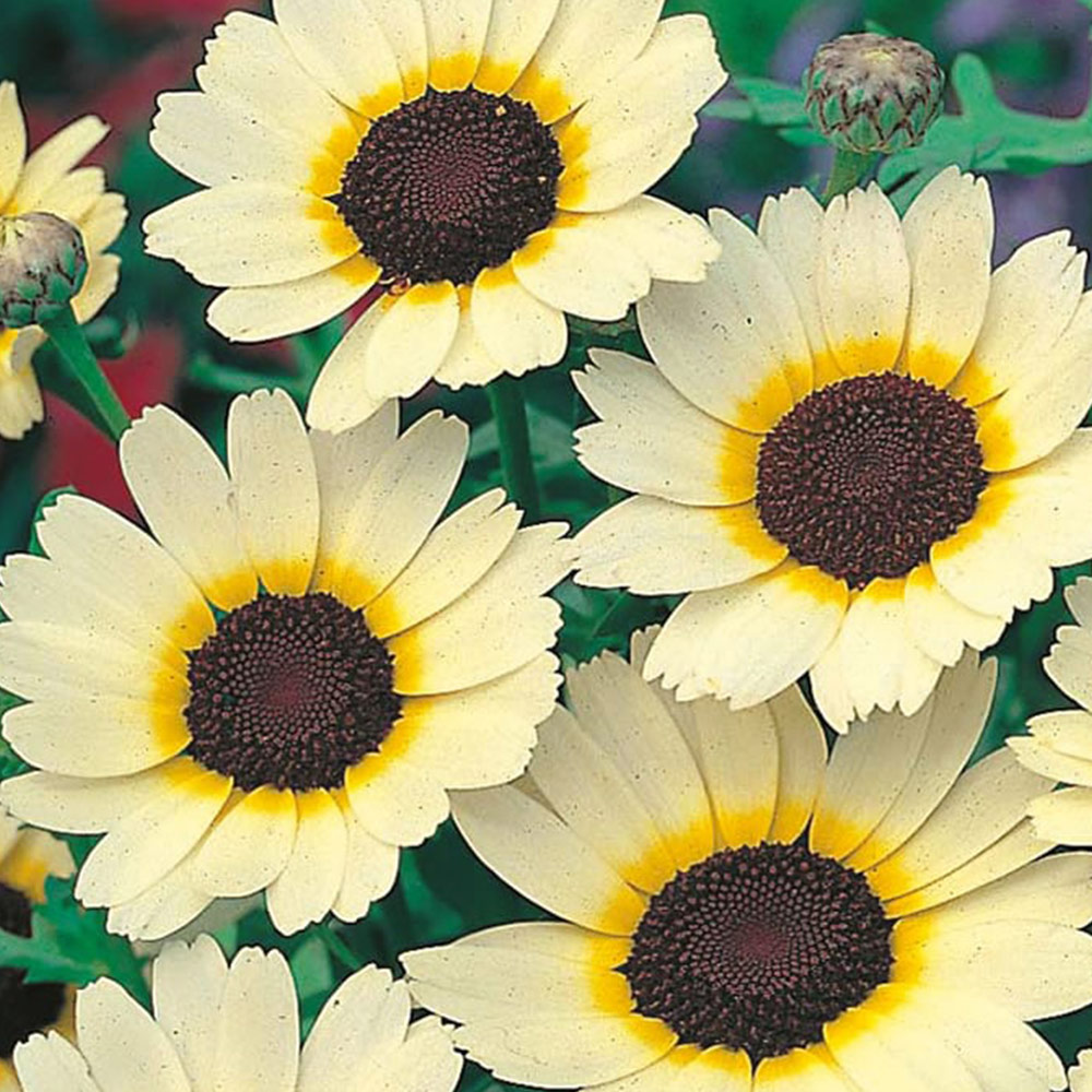 Add a stylish collection of colourful flowers to your garden with our Chrysanthemum Eastern Star Seeds. Easy to grow, these seeds produce large, stylish blooms with lemon-yellow petals and a deeper yellow ring and brown eyes. A popular food source for pollinating bees and predatory insects that will help control garden pests. A hardy annual. Sow outdoors from March to May for flowers between June and October. The average pack contains 200 seeds. Height: 90cm.