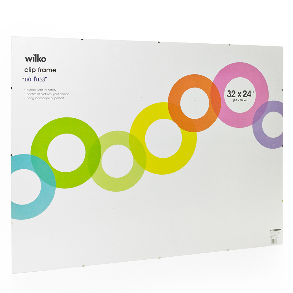 Wilko clip frame, No fuss, plastic for safety. For mounting Photo's or pictures, your choice! Can be hung landscape or portrait. WARNING Take care when hanging this item against painted walls. Always read label.