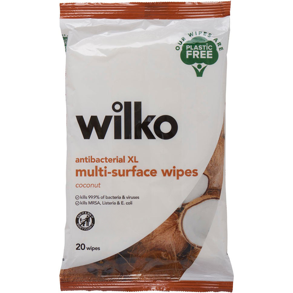Give a quick and hygienic cleaning to various surfaces with our pack of antibacterial multi-surface wipes. Pack of 20 extra-large wipes, they kill 99.9% of tested bacteria including Pseudomonas aeruginosa, Escherichia coli, Staphylococcus aureus, Enterococcus hirae, Salmonella enterica subsp, salamae and Listeria monocytogenes. Plus, they also kill MRSA and H1N1 viruses. These plastic-free wipes sweep away grease, dirt and impurities while leaving a fresh coconut scent behind. Ideal to use in the kitchen, nursery, bathroom and anywhere where bacteria may be present. Vegan friendly. Directions to use: Peel the back label and remove the wipe as required. Reseal label to prevent wipes from drying out. Use each wipe once and on one surface to reduce the spread of bacteria from one surface to another.