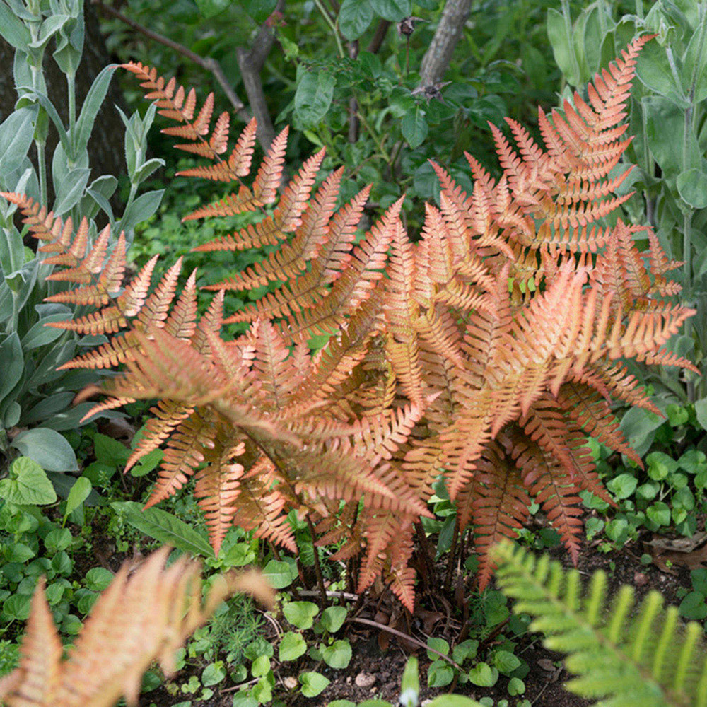 Transform your garden into a beautiful paradise with our Colourful Hardy Fern Collection. These ferns will reward you with colourful foliage and are perfect together to grow in your garden borders, a large pot, or even in mixed planters. They prefer cool, fertile soil that doesn't dry out and look best in shady areas where their colours can shine. This collection includes three plants in 9cm pots - Athyrium otophorum var. okanum, Dryopteris erythrosora and Athyrium niponicum var. pictum 'Ursula's Red'. The Athyrium otophorum var. okanum is a yellow-green, glowing foliage with contrasting red veins and stipe. It grows 45cm tall and looks great in a pot and prefers shade. Also, it is a deciduous fern, so leaves die back in the winter before emerging again next spring. The Dryopteris erythrosora is a striking deciduous fern with triangular-shaped fronds which are copper-red when young and slowly mature to dark green. This plant grows approximately 40cm tall and 60cm wide. Lastly, the Athyrium niponicum var. pictum 'Ursula's Red' is a painted lady fern with rich purple-bronze tones. Its two-tone effect fades as the fronds mature - the purple tones diminish, and they become greener with a silver dusting. It approximately grows 40cm tall and 120cm wide and looks great in a large pot placed on a shady terrace.