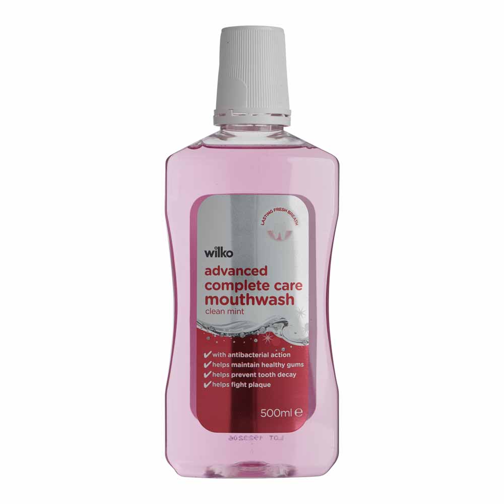 Our Clean Mint Advanced Complete Care Mouthwash has been formulated for all-round mouth care. Used twice daily after brushing, it helps to prevent plaque and cavities, reduce oral bacteria, maintain healthy gums and leave your mouth with fresh breath confidence. Not suitable for vegans. Contains: Aqua, Alcohol Denat., Glycerine, Peg-40 Hydrogenated Castor Oil, Sodium Citrate, Aroma, Eugenol, Limonene, Sodium Fluoride, Sodium Saccharin, Cetylpyridinium Chloride, Sodium Benzoate, Citric Acid, Ci 14720, Ci 42090.
