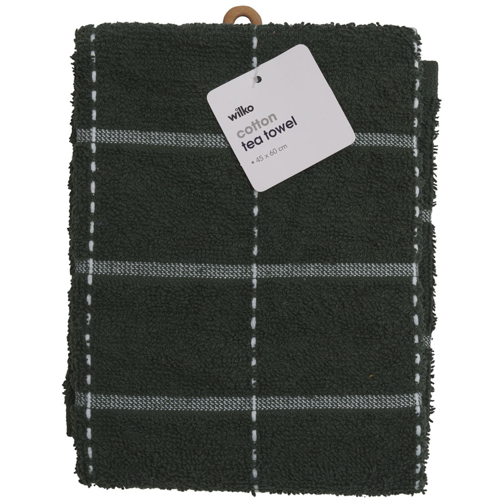 Dry all your dishes in no time with our Terry Tea Towel in green. The tea towel is made from 100% cotton and is machine washable. Each tea towel measures 45 x 60cm. Care and use: Wash before use. Wash with similar colours. Machine washable. Do not bleach. Tumble dry low. Do not dry clean.