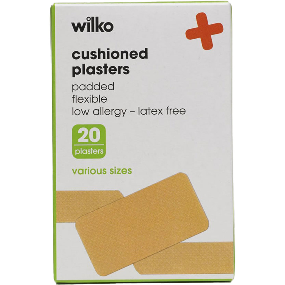 Our cushioned plasters are in easy opening wrappers and have a breathable backing to assist healing by allowing air to reach the wound. The plasters are padded to protect the wound from further knocks and also have a low allergy adhesive to reduce the risk of an allergic reaction. Pack of 20 plasters. Contents: (19 x 72mm) x 16 (38x72mm) x 4 (25 x 76mm) x 8Pack of 20x cushioned plasters in assorted sizes. Pack contains 16x 19mmx72mm and 4x 38mmx72mm. Latex free. Use each plaster only once. If wound does not appear to heal or continues to bleed or becomes red and inflamed, painful or swollen seek medical advice. Do not use if individual wrappers are damaged or torn. Do not use after expiry date printed on bottom of pack. Please read instructions carefully before use.