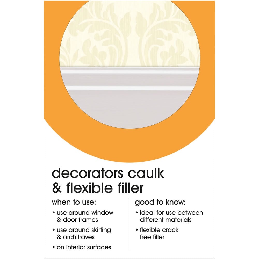 A Flexible Caulk Filler from the Wilko Decorator range. A flexible acrylic sealant, ideal for filling gaps around skirting, coving or windows. Easy to smooth and paintable once dry. Always read instructions.