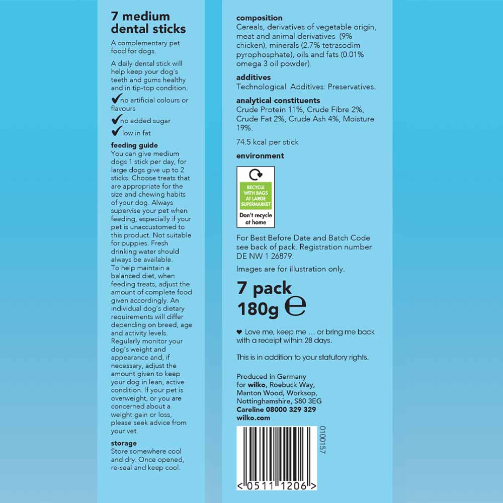 Our 7 pack Dental Chewy Sticks will help keep your dog's teeth and gums healthy and in tip-top condition. Given daily, the gently abrasive texture plus active ingredients to help to reduce tartar build-up and the added Omega 3 helps keep the joints in good health. With no sugar and artificial colours or flavours, it is low in fat as well. 180g.