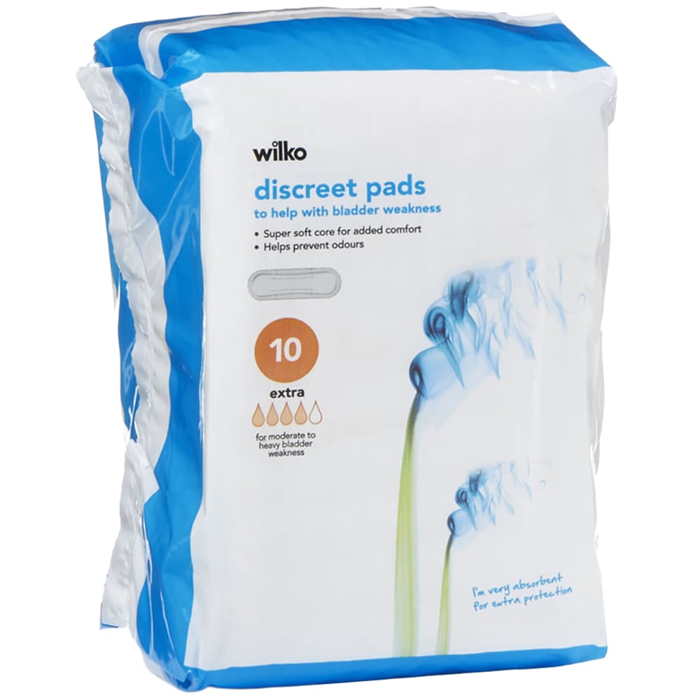 Our ultra-discreet pads provide reliable protection for bladder weakness. The highly absorbent core quickly wicks away moisture, preventing odours and keeping you feeling fresh, dry, and confident. Each pad is individually wrapped for your convenience and discretion. Ideal for moderate to heavy bladder weakness. Pack of 10. Always read the label.