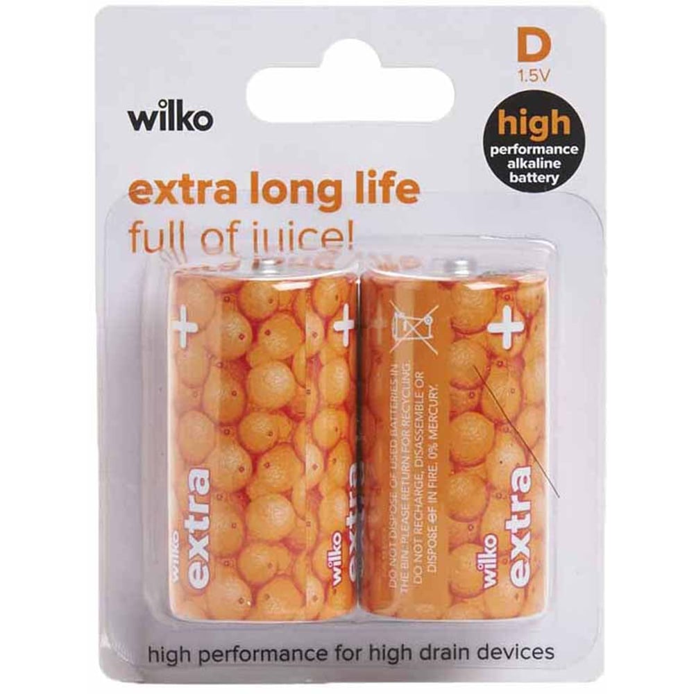 Wilko Extra Long Life D 2 Pack 1.5V Alkaline Batteries