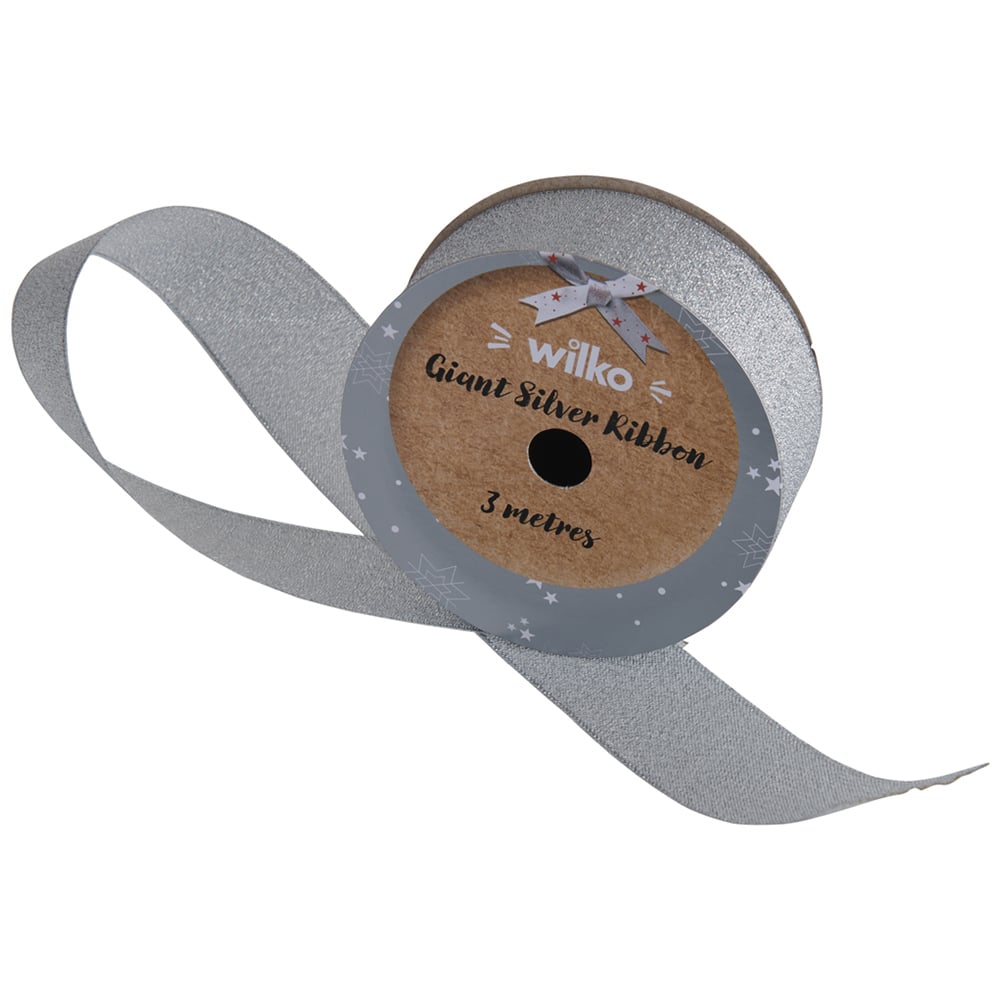 Wrap gifts in style or accent your crafts with our Giant Silver Fabric Ribbon. Finished in a silver colour, this fabric ribbon has a textured finish that will brighten your space. Easy to use, simply cut to size and create bows, fun DIY arts, gift wrapping accents and much more. Size: 3m.