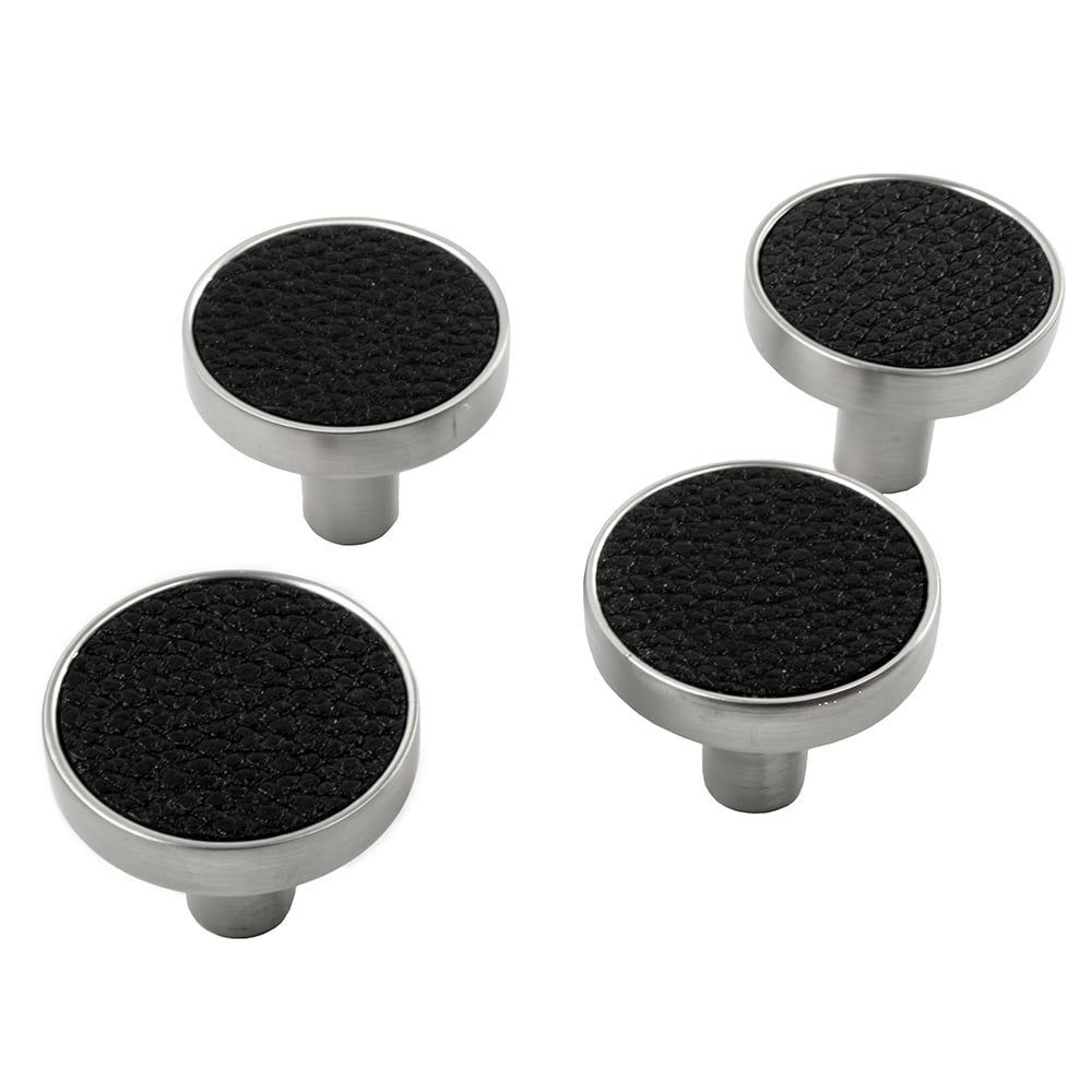Give your furniture a new look with our Global Leather Knob. Finished in a chrome effect with a black leather effect, the knob will bring a modern touch to a range of furniture around the home. The cabinet door knobs are replacement knobs for kitchen cabinets, wardrobes and furniture around the home. Screws included. The pack contains four knobs. Care and use: Wipe clean with a soft, damp cloth. Do not use harsh or abrasive cleansers/scourers.