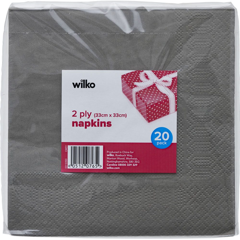 Our Grey 2ply Napkins are good quality napkins ideal for use as dinner napkins. They are designed to be used at the dinner table or parties. These napkins are absorbent enough and can be used to clean up messes and spills. Size: 33 x 33cm. Pack of 20.